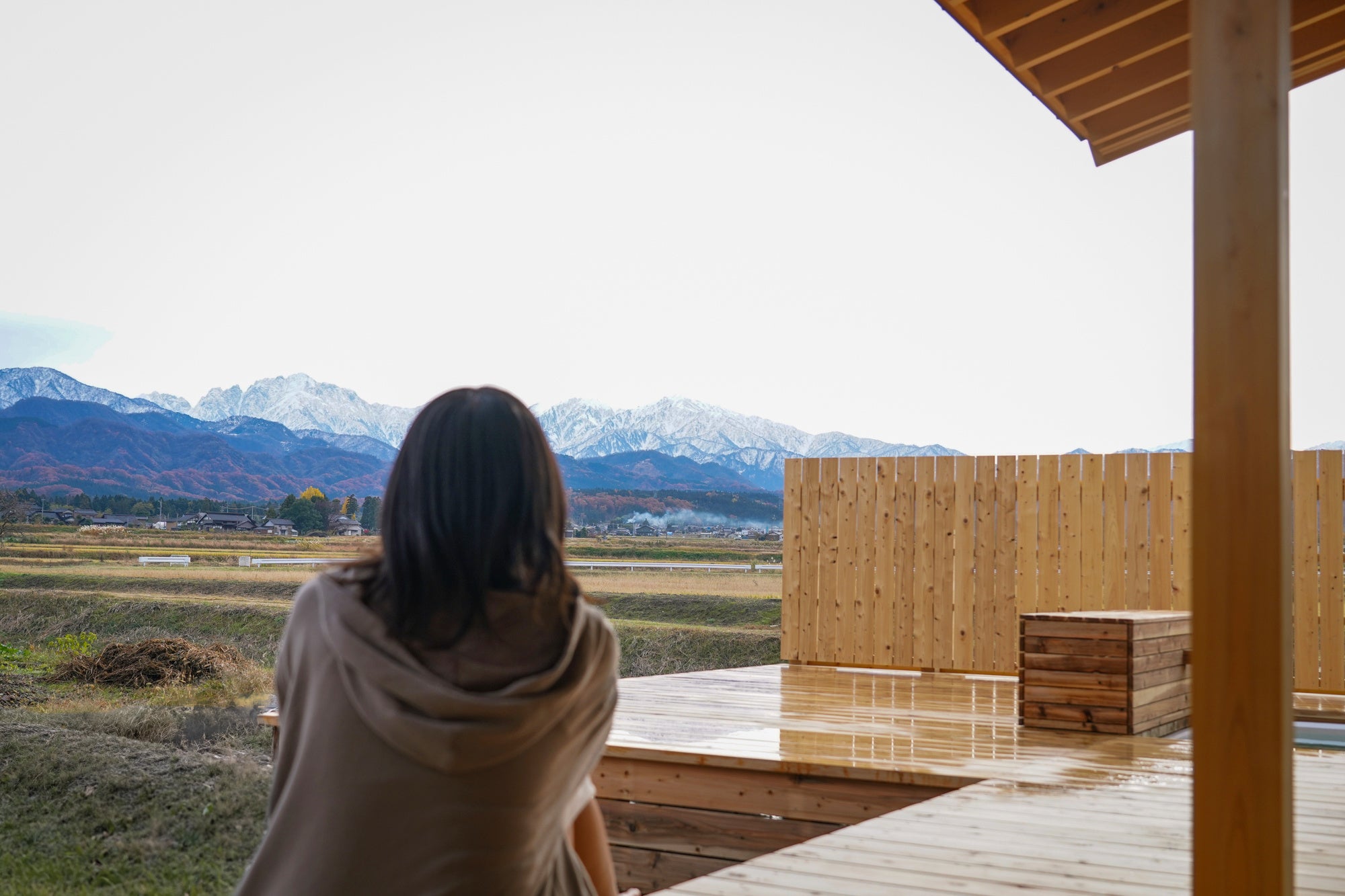 当施設は、剱岳(つるぎだけ)をはじめとした立山連峰を望むロケーションに位置し、広大な田園風景の中に佇む木の宿 「景(ひかり)の家」と、はなれのサウナを一日一組限定で提供。本場フィンランド製のストーブを用いたサウナ、天然の水風呂、外気浴ができる縁側やウッドデッキ、露天風呂(天然温泉)、全面ガラス張りのリラックススペース、火を眺める暖炉と共にどの場所からでも立山連峰・剱岳を眺めることができます。サウナプロデューサーのカワちゃん(川田直樹氏)が監修、設計は建築家・河合俊和氏が手掛けました。