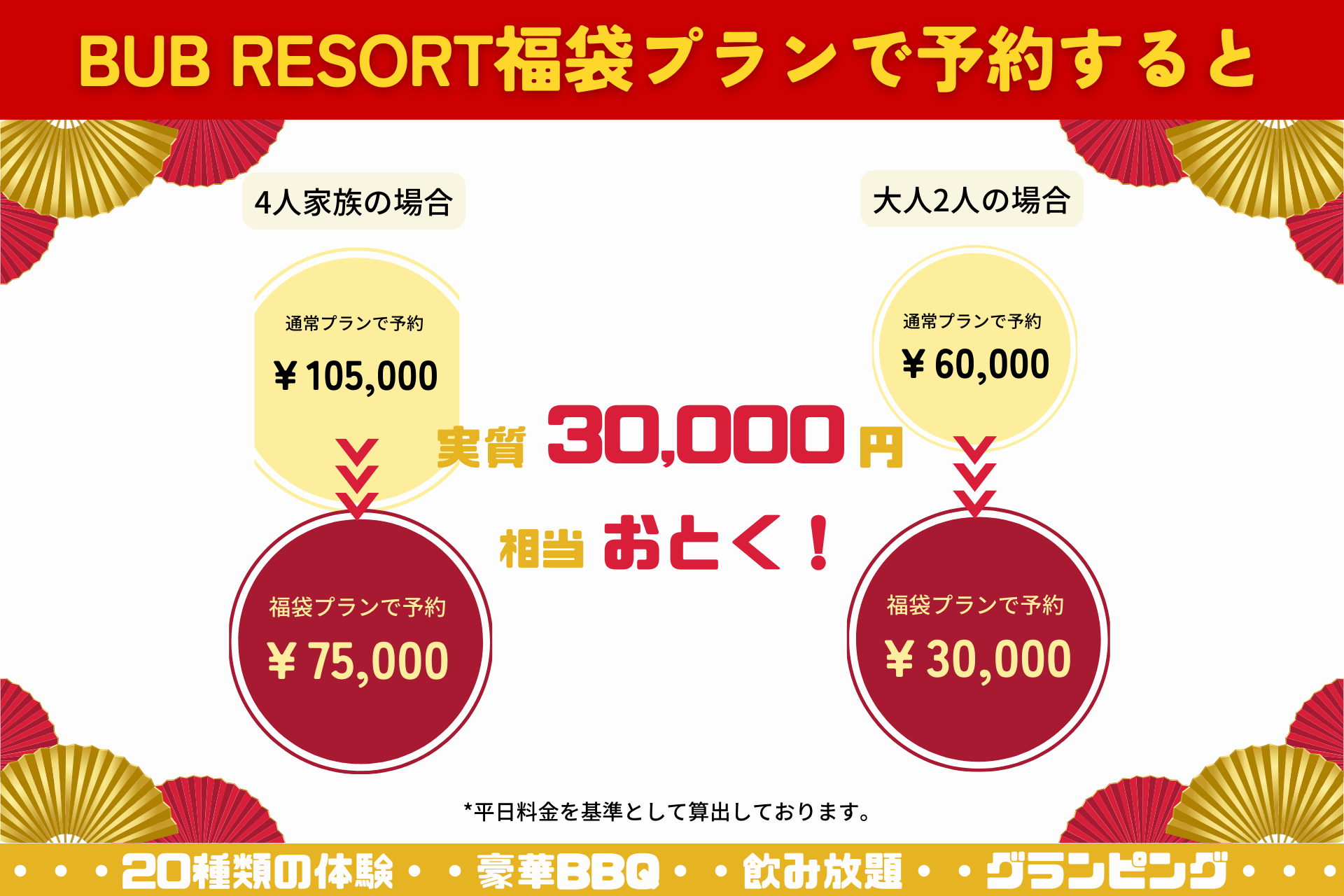2024年1月1日から三日間でBUB RESORTが大人料金半額の福袋プランを販売。子どもの体験機会を増やしたい