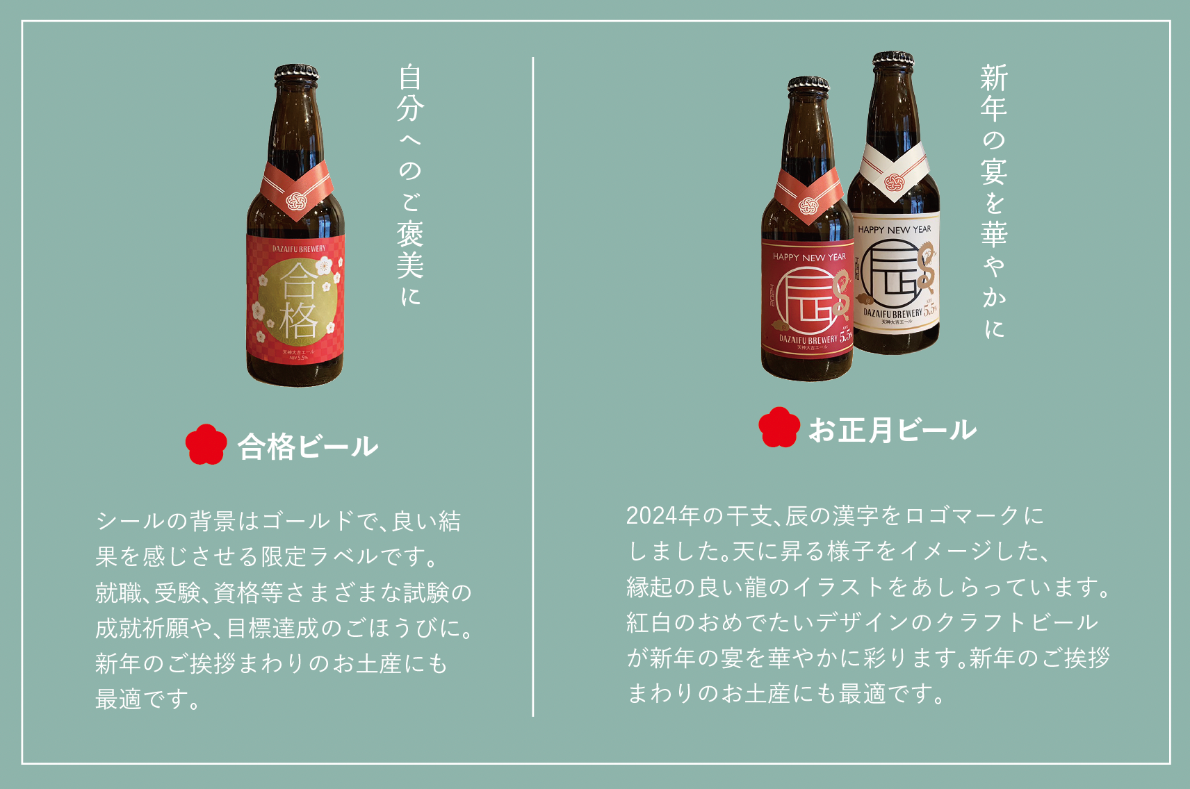 「合格」&「お正月」デザインラベルのクラフトビールを各300本限定販売します。
