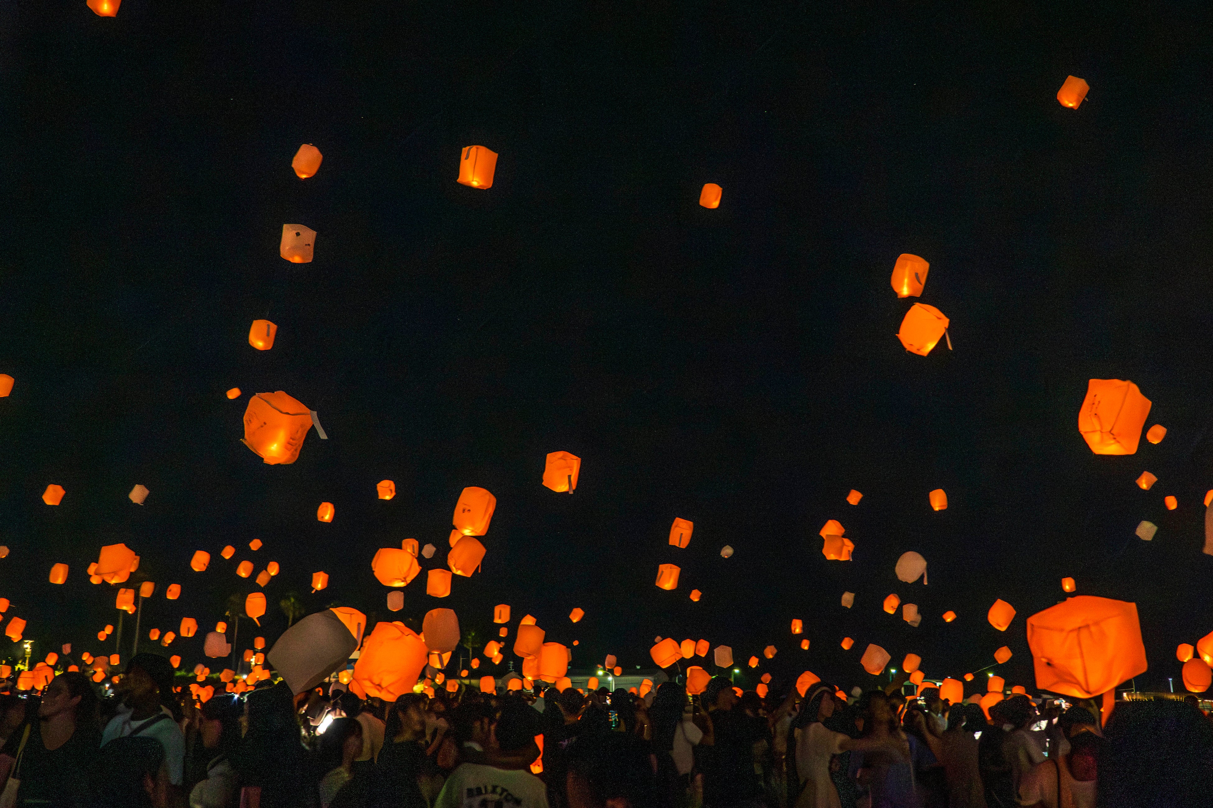 オレンジ色に光るランタンが空いっぱいに舞う姿は幻想的。