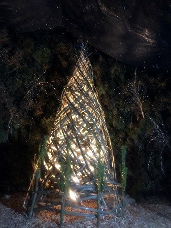 箱根強羅公園(神奈川県足柄下郡箱根町強羅)では、12月27日(水)から1月21日(日)まで園内のイベント館で正月イメージの展示「森のトンネル」を開催します。入り口から続く大きな森のトンネルを抜けると、館内中央に光輝く竹でできた門松をモチーフにしたランタンが登場。1年間の五穀豊穣を願う縁起物の餅花が館内中央に施され、特にオブジェ周辺は金色の餅花が華やかに演出されています。
