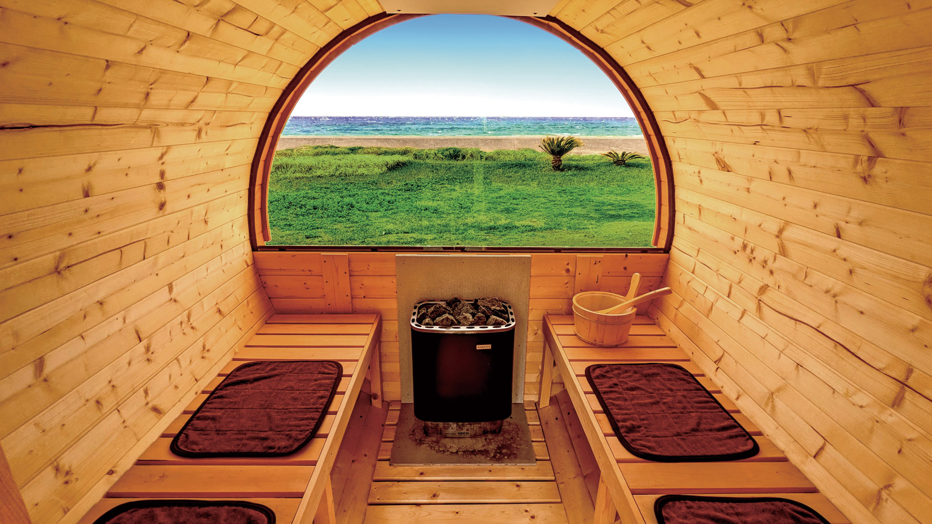 最大13名で宿泊可能な1日1組限定のプライベートヴィラにオーシャンビューバレルサウナを設置しました。
