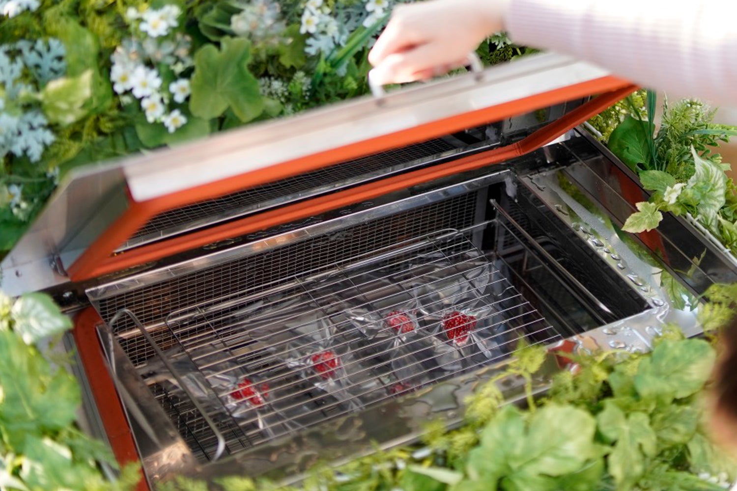 一般的な冷凍機で作ったフローズンストロベリーは、氷結晶が大きくなることで固い食感になってしまいますが、フリーズマスターで急速冷凍することによって氷結晶が小さく均一に生成されることで食感が驚くくらい変わります。