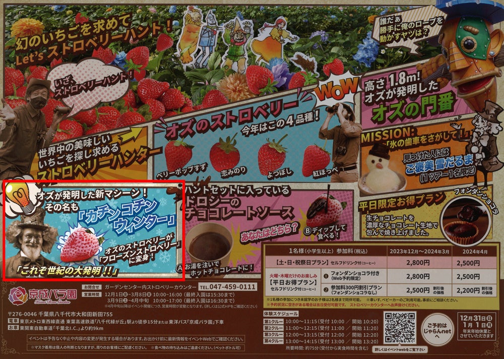 イチゴ狩りイベントではオズの世紀の大発明「カチンコチンウインター」として紹介されています。