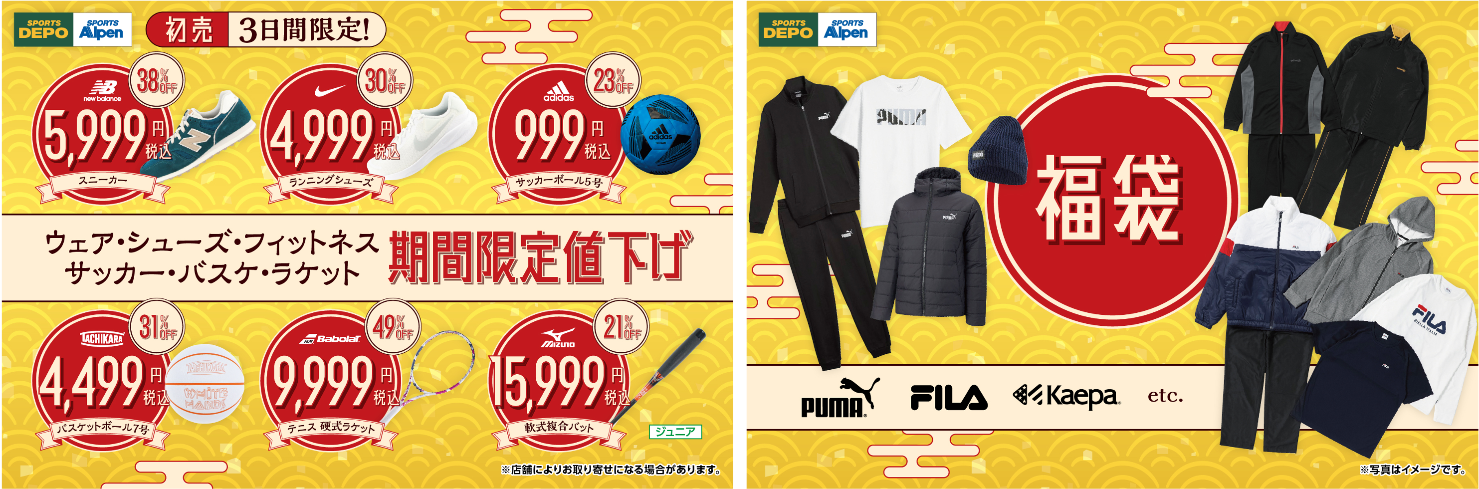 アルペングループ「初売セール」を1月1日から8日間開催!恒例の人気スポーツブランドの福袋や各競技の初売奉仕品をご用意し、家計もスポーツも応援!