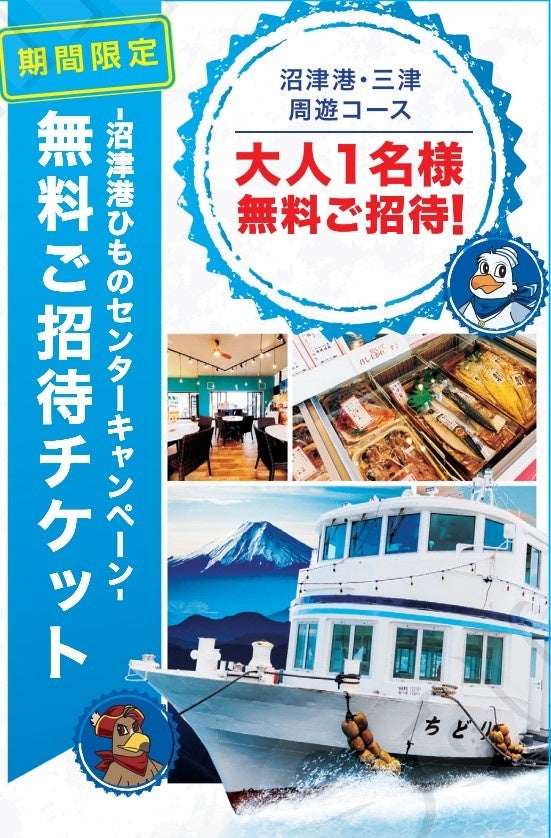 ・乗船券は沼津港遊覧クルーズ乗り場前の【ちどりひものセンター】にて7:30頃から販売いたします。