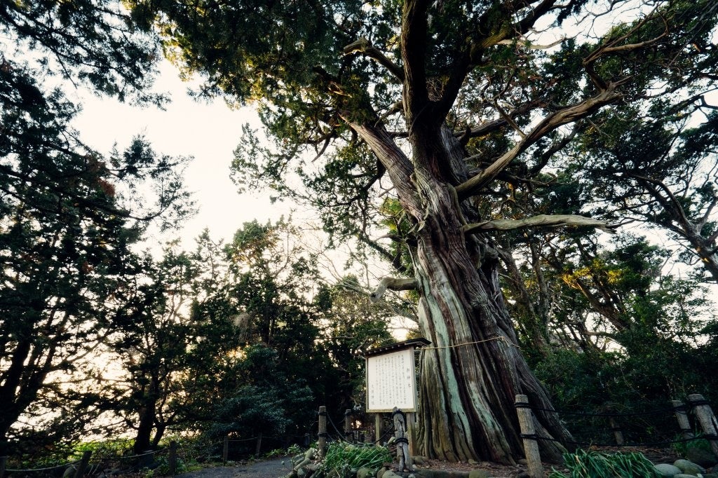 中でも、推定樹齢1500年の御神木「夫婦ビャクシン」の存在感は群を抜いています。