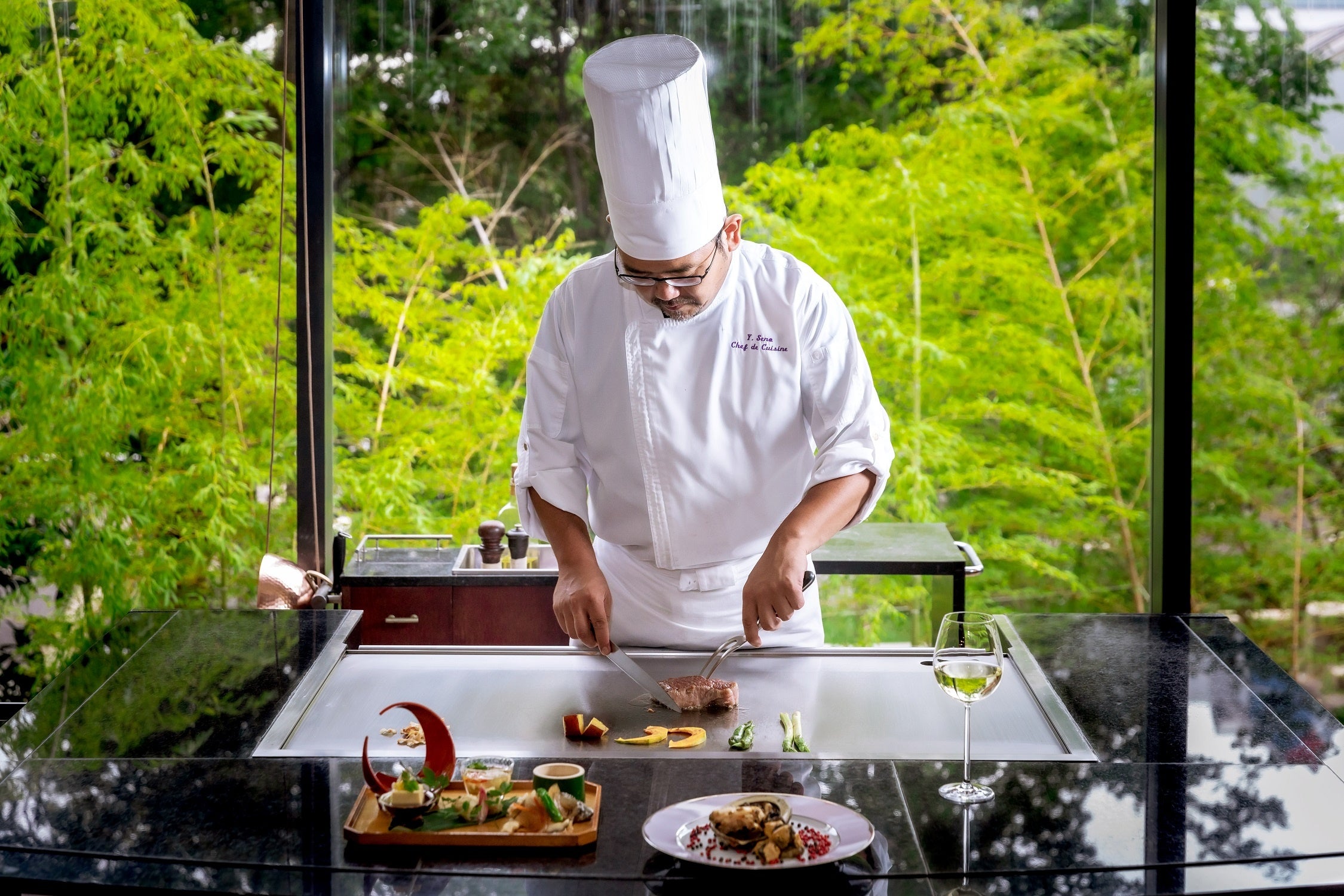 スイートルームでホテルシェフによるプライベートダイニングのご夕食(初日1回)