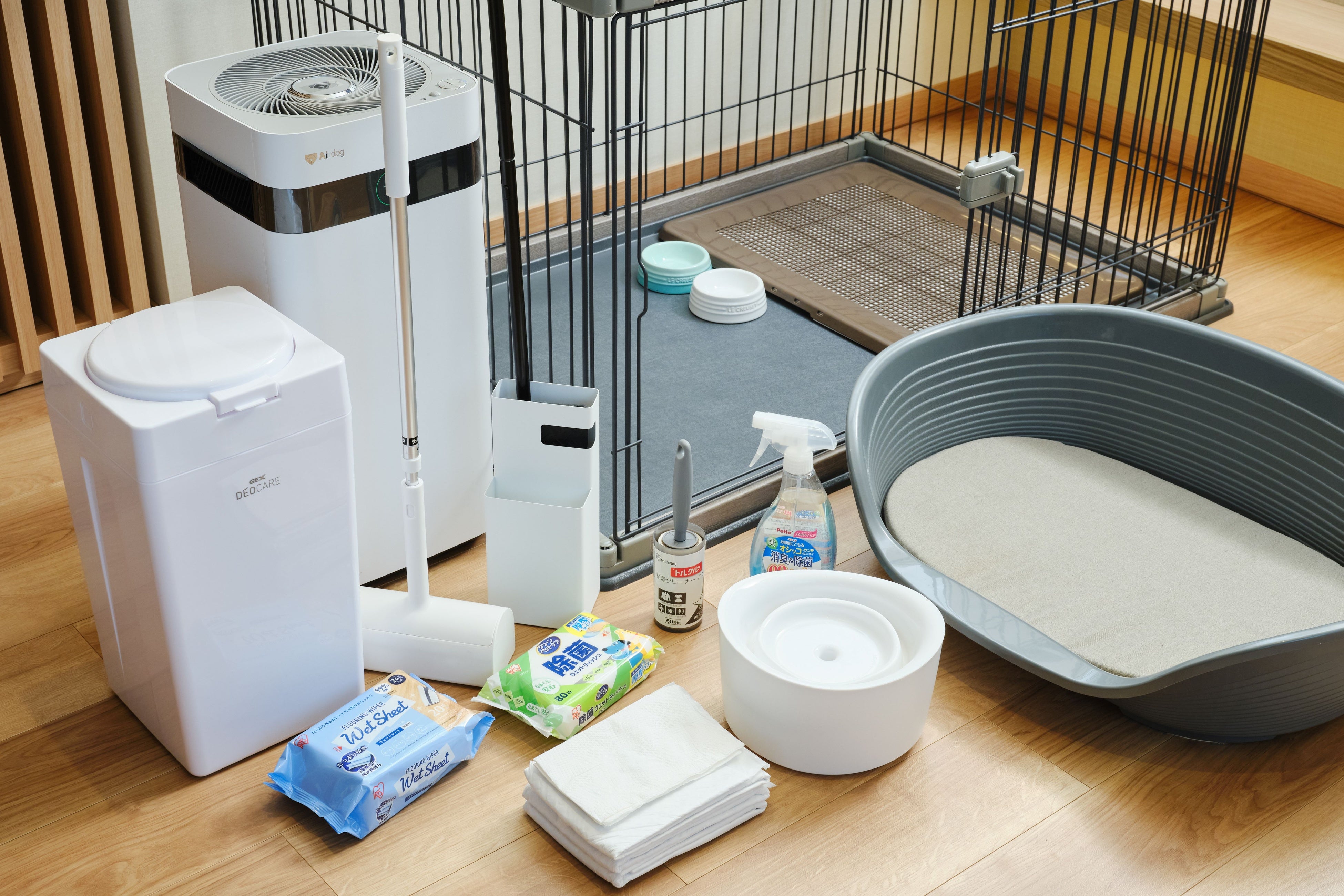 お部屋には、ケージ・食器・おもちゃ・トイレシート・ウェットティッシュ・消臭剤・粘着ローラー・エチケット袋をご用意しています。必要な備品が揃っているので、荷物が増えがちな旅行でもストレスなくワンちゃんとのご旅行をお愉しみいただけます。