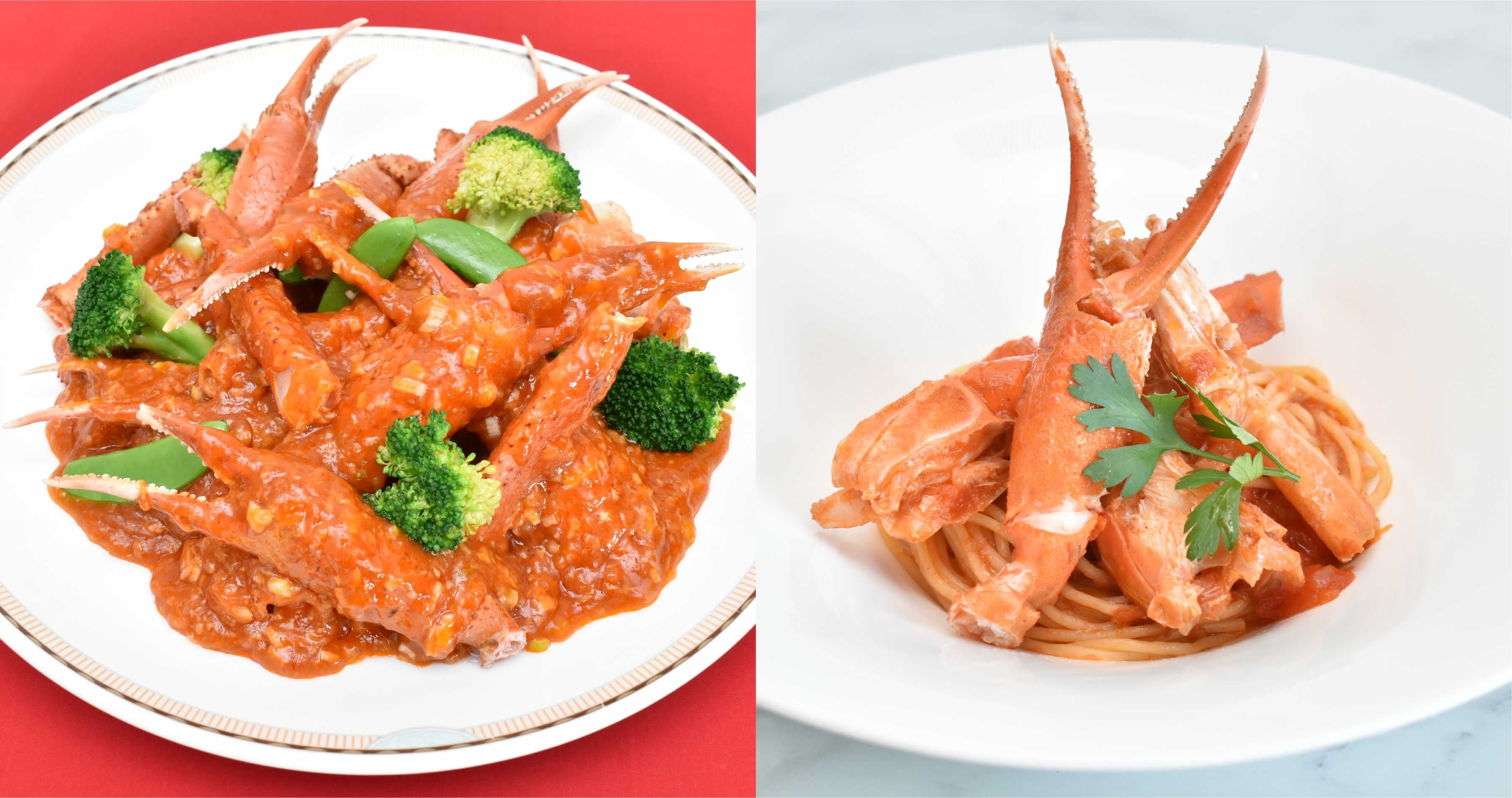 ボイル蟹(本ズワイ蟹や紅ズワイ蟹など)/蟹入りフラン/蟹風味のポテトサラダ最中/蟹身入り蟹酢ジュレソース スモークサーモン/蟹入り冷製クリームスープ/スモ―ガストルタ/北欧風ミートボール/蟹クリームコロッケ/蟹入りシーフードグラタン/蟹のチリソース/蟹肉入りフカヒレスープ/蟹カマ天津飯/蟹焼売/焼きたてステーキ/勝手丼(鮪・サーモン・いくらなど)/みかんタルト/レアチョコムース/苺ショートケーキ/抹茶プリン/アイスクリーム(6種)/チョコレートファウンテン/フルーツ各種 他