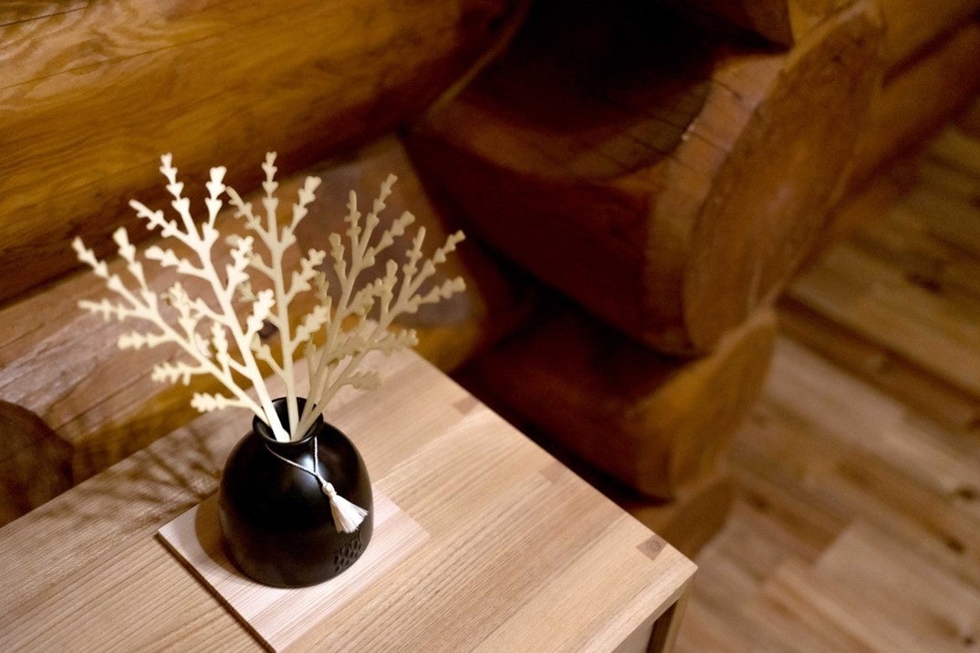 3種類の香りはそれぞれ、平安時代から連綿として受け継がれてきた日本の「お香」の香りをモチーフにし、ヒノキや柚子などの和精油を用いて、枯山水に代表される日本庭園や古寺、そして日本固有の雅な世界を香りで表現しています。部屋に居ながらにして京都や奈良の寺社仏閣を訪れ、日本庭園の前に佇んでいるような、上質な時間を過ごすことができます。