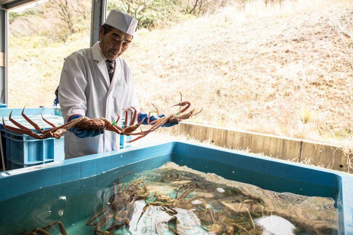 京都の最北、活ガニ(かつがに)専門の料亭旅館。「間人温泉 炭平」の使命は、美味しい間人蟹を安定的に提供する事、そして現状に甘んじることなく進化させること。