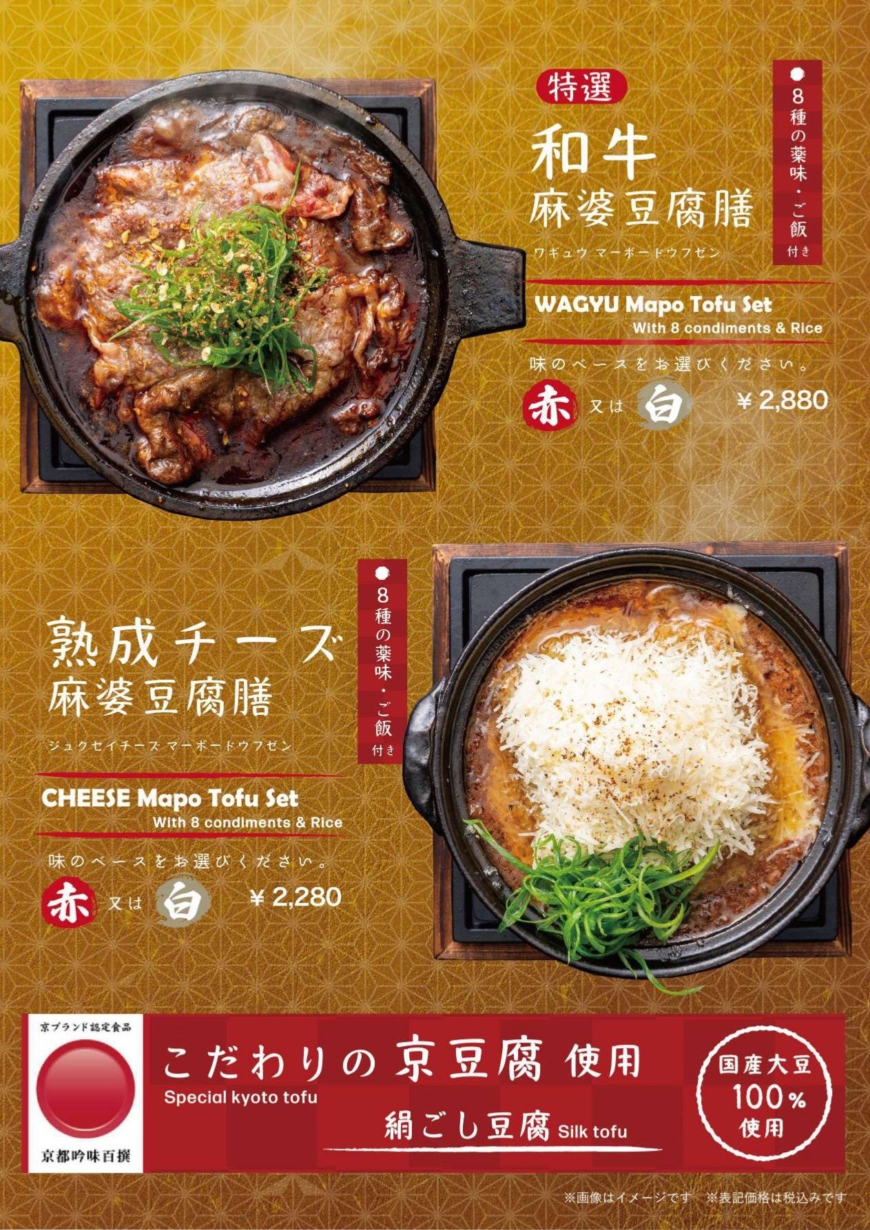 2024年冬の新作麻婆豆腐は2種類ご用意しており、どちらも厳選された素材と京豆腐の魅力が最大限楽しめる麻婆豆腐に致しました。