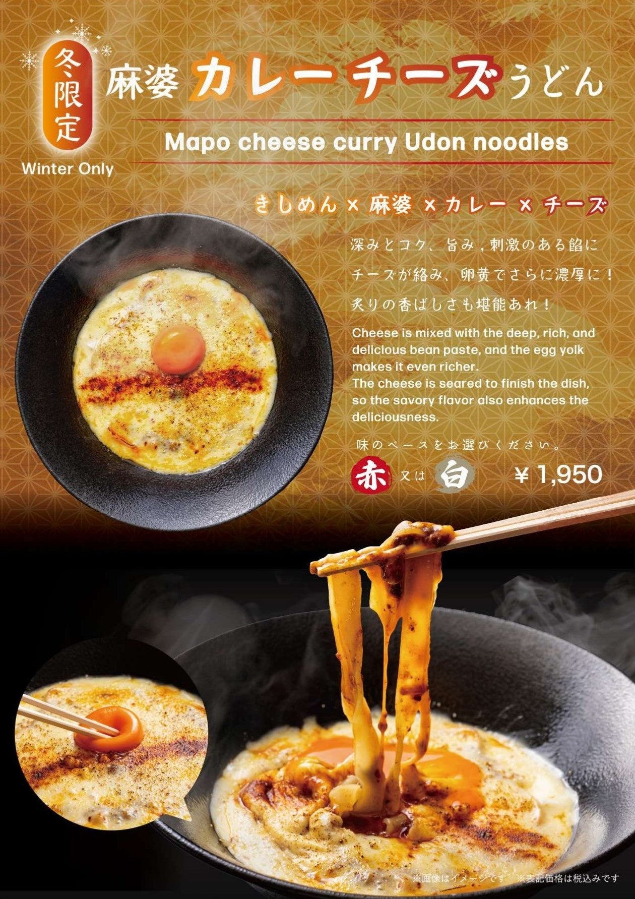 ■きしめん×チーズ×麻婆カレーの極旨うどんも新登場