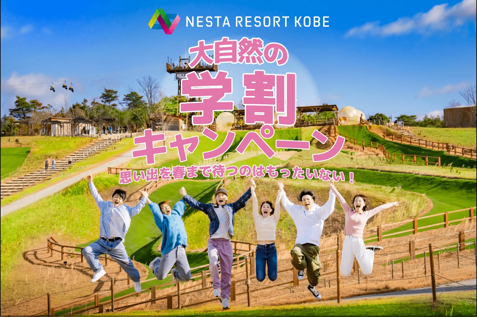 学生の皆様に向けた「大自然の学割キャンペーン」を2月1日から期間限定で開催いたします。春が近づき、新しいスタートへの準備が進む中で、今の瞬間を大切に思い出に残しませんか?ネスタリゾート神戸は、「大自然の学割」で学生の皆様の思い出作りを応援いたします。