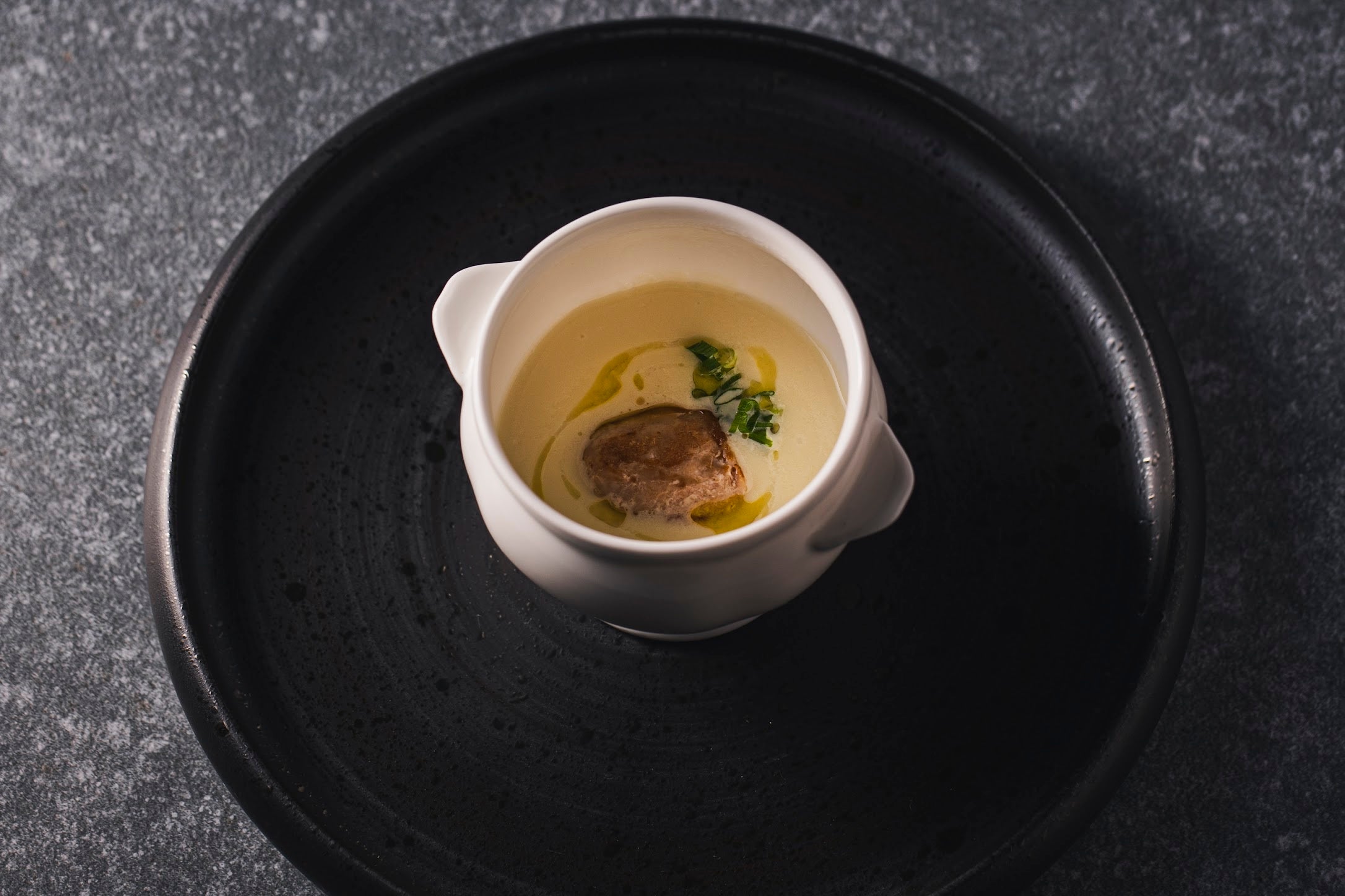 オーベルジュは、勝屋酒造の創業地であり、戦国時代に宗像家の山城があった城山の麓に湧く泉「麓寿泉」の名水を使用しています。この水を用いた料理や飲み物は、古き良き時代の風情と味わい深さをお届けいたします。
