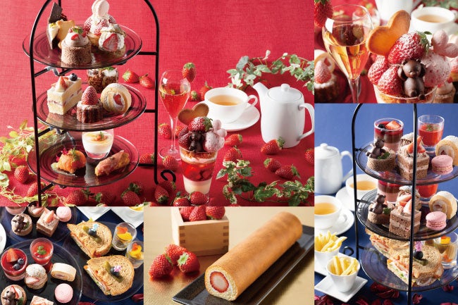 旬のイチゴとチョコレートを使用したスイーツが勢揃い。(画像は2名様用です)
