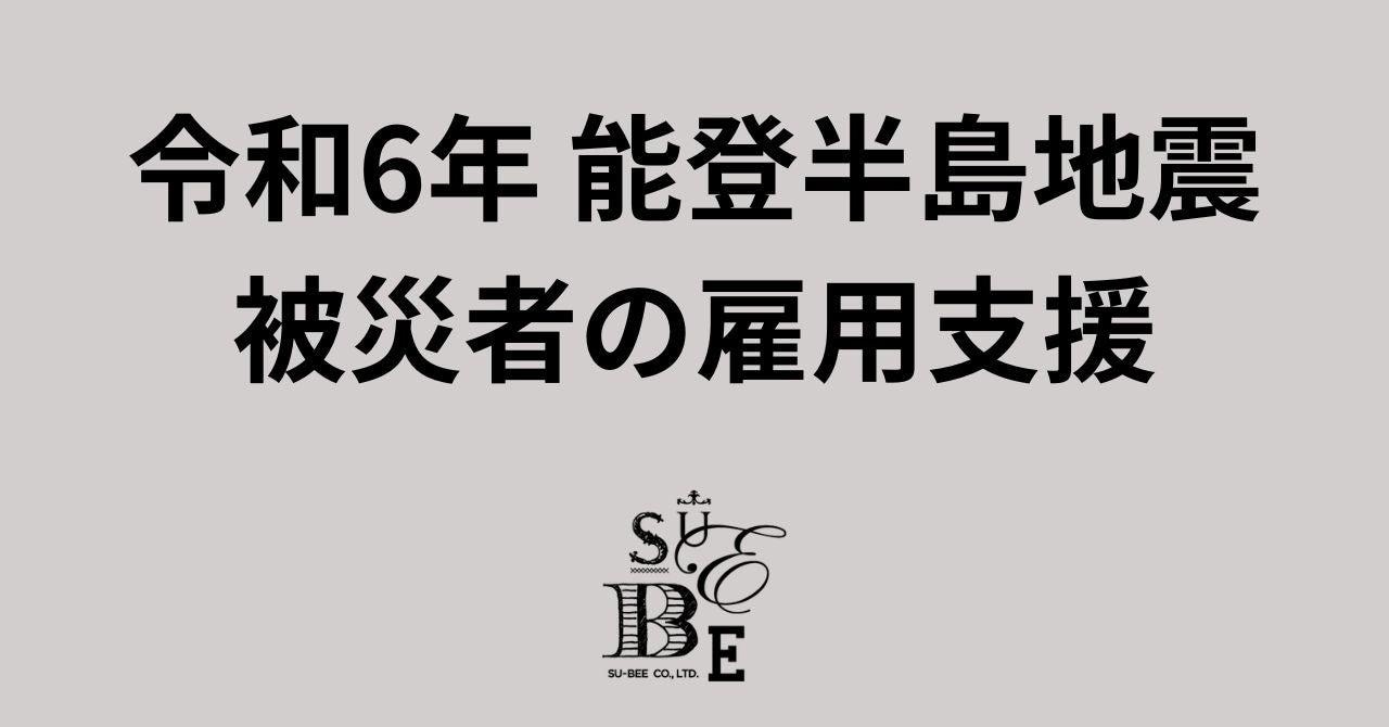 石川県を拠点に、飲食店の企画・運営を手掛けている株式会社SU-BEE(本社:石川県金沢市、代表取締役社長:田端 弘一)は、能登半島地震により職場・仕事を完全に失ってしまった方、一時的に失ってしまった方に対し、当社が金沢・福井で展開する飲食店を中心に、雇用の受入を行います。