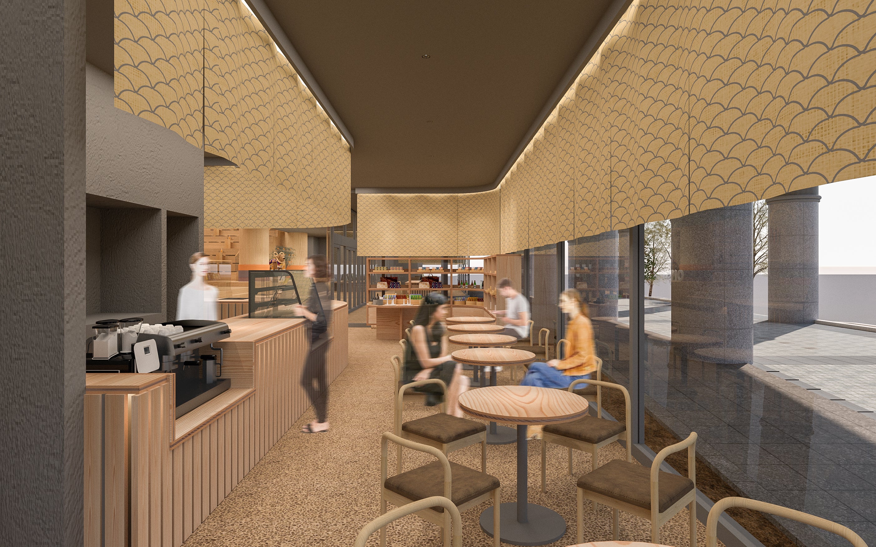 カフェ&バルでは、高知ならではのユニークなご当地商品を取りいれながら、手頃なスナックから満足感あるメニューを揃えています。カフェで購入した商品は、店内はもちろんOMOベースの大階段など、館内のどこで食べてもOK。自由に食のスタイルを楽しめます。