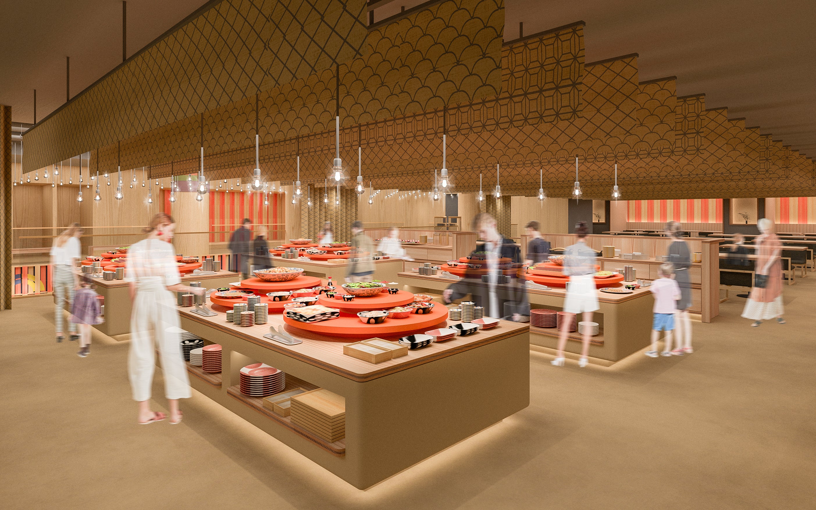「TOSAインスパイア」をテーマにバリエーション豊富なメニューがそろうビュッフェスタイル。高知の伝統料理「皿鉢(さわち)」に見立てたビュッフェテーブルには、色鮮やかな料理が盛り付けられます。高知の食文化を尊重しつつ、伝統的な料理をベースに色々な食材を組み合わせ、定番料理から創作料理など、魅力ある料理を提供します。