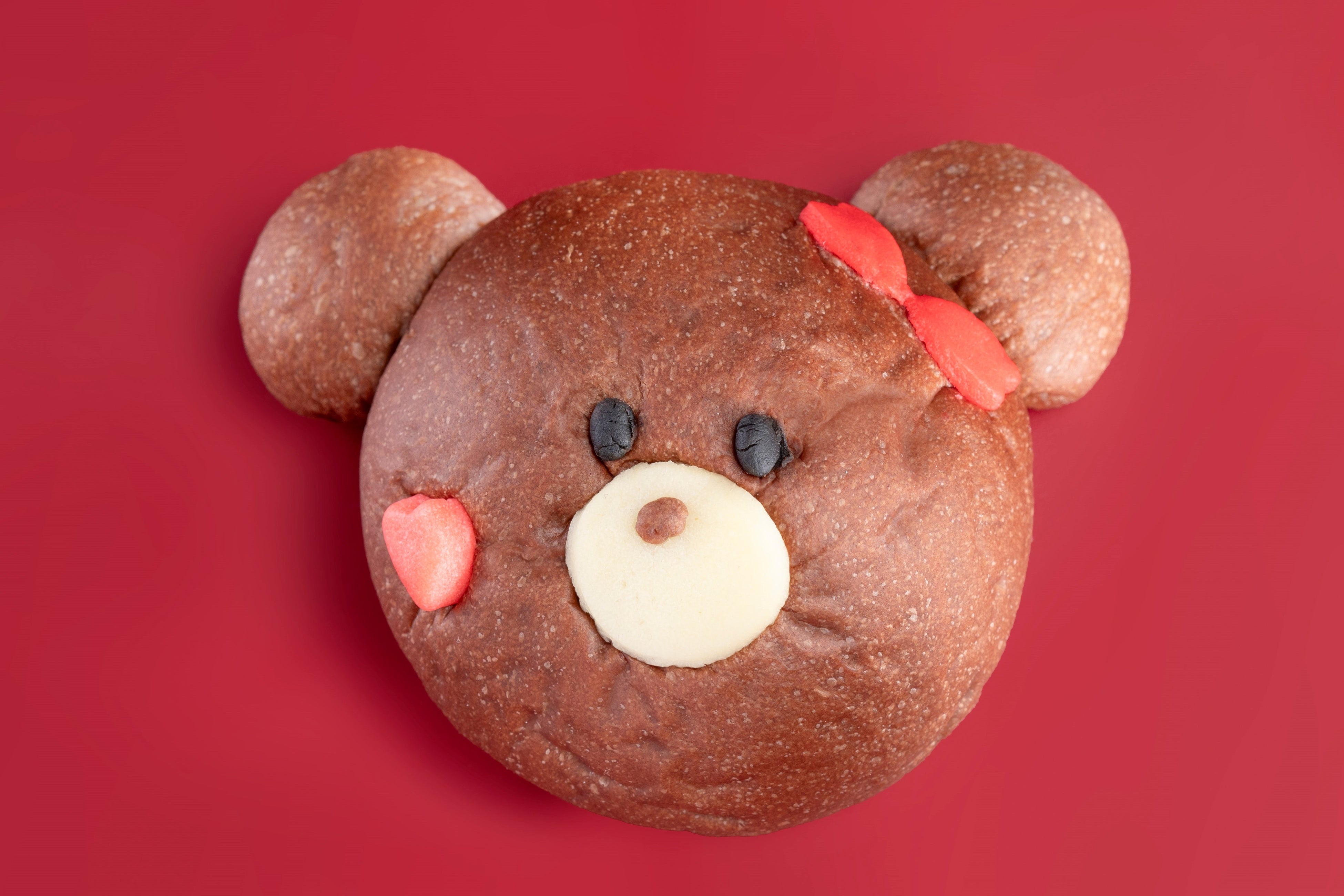 ココア生地の中にチョコカスタードクリームをたっぷり詰めた、キュートなくま形のパンです。中のクリームにはチョコと相性の良いオレンジリキュールを加え、オレンジのさわやかな酸味と苦味がチョコレートの濃厚な味わいを引き立てます。