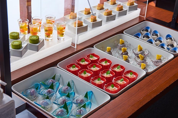 食後は、冷たいデザートをビュッフェ台よりお好きなだけお取りいただけ、出来たての温かいパンケーキはお席までお持ちいたしますので、心ゆくまでご堪能ください。