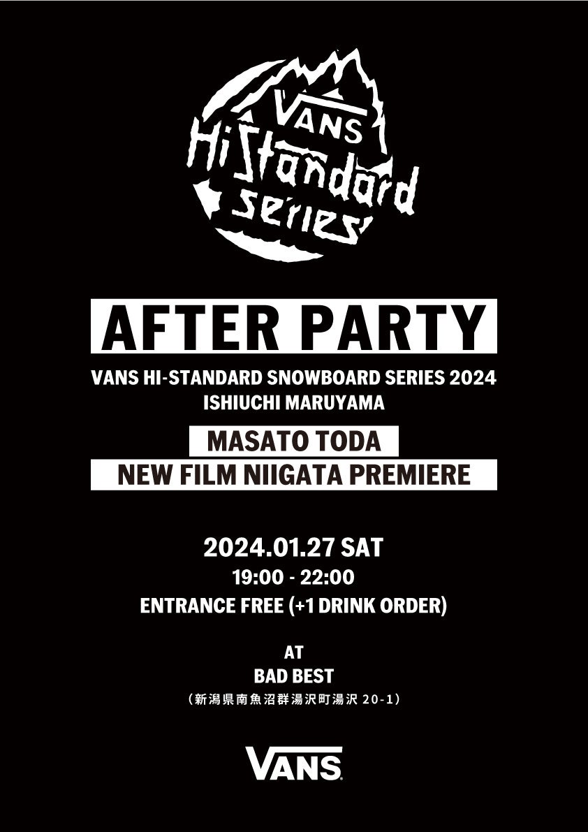 「VANS HI-STANDARD SNOWBOARD SERIES (ヴァンズ ハイスタンダード スノーボード シリーズ)」を新潟県・石打丸山スキー場内の特設コースで2024年1月27日(土)に開催いたします。