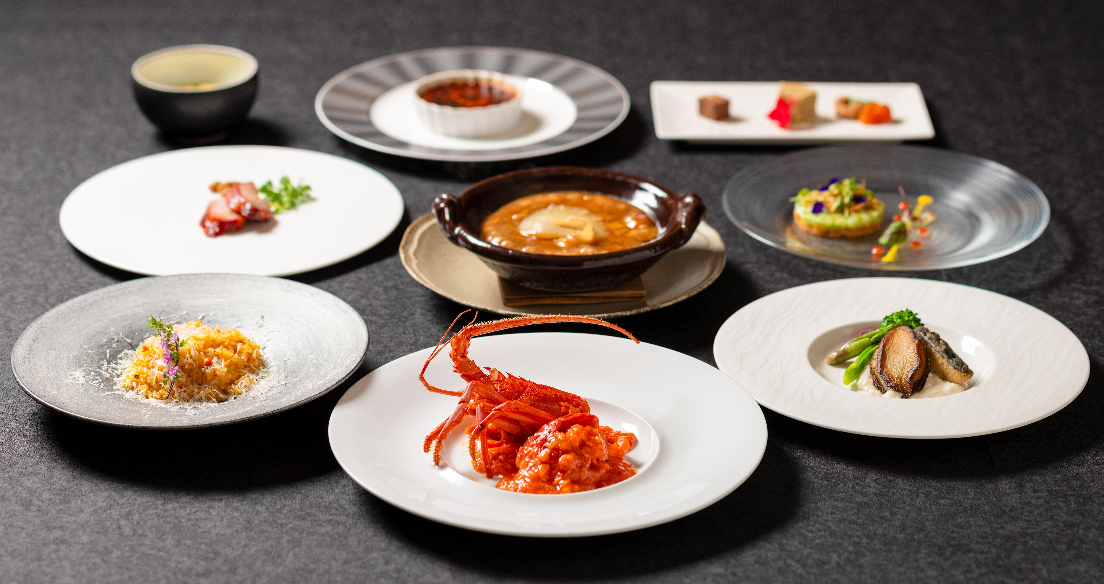 お好みの調理法が選べる国産伊勢えびをメインに、ふかひれの姿煮込みや鮑など贅沢な海の幸をお愉しみいただける期間限定コース。