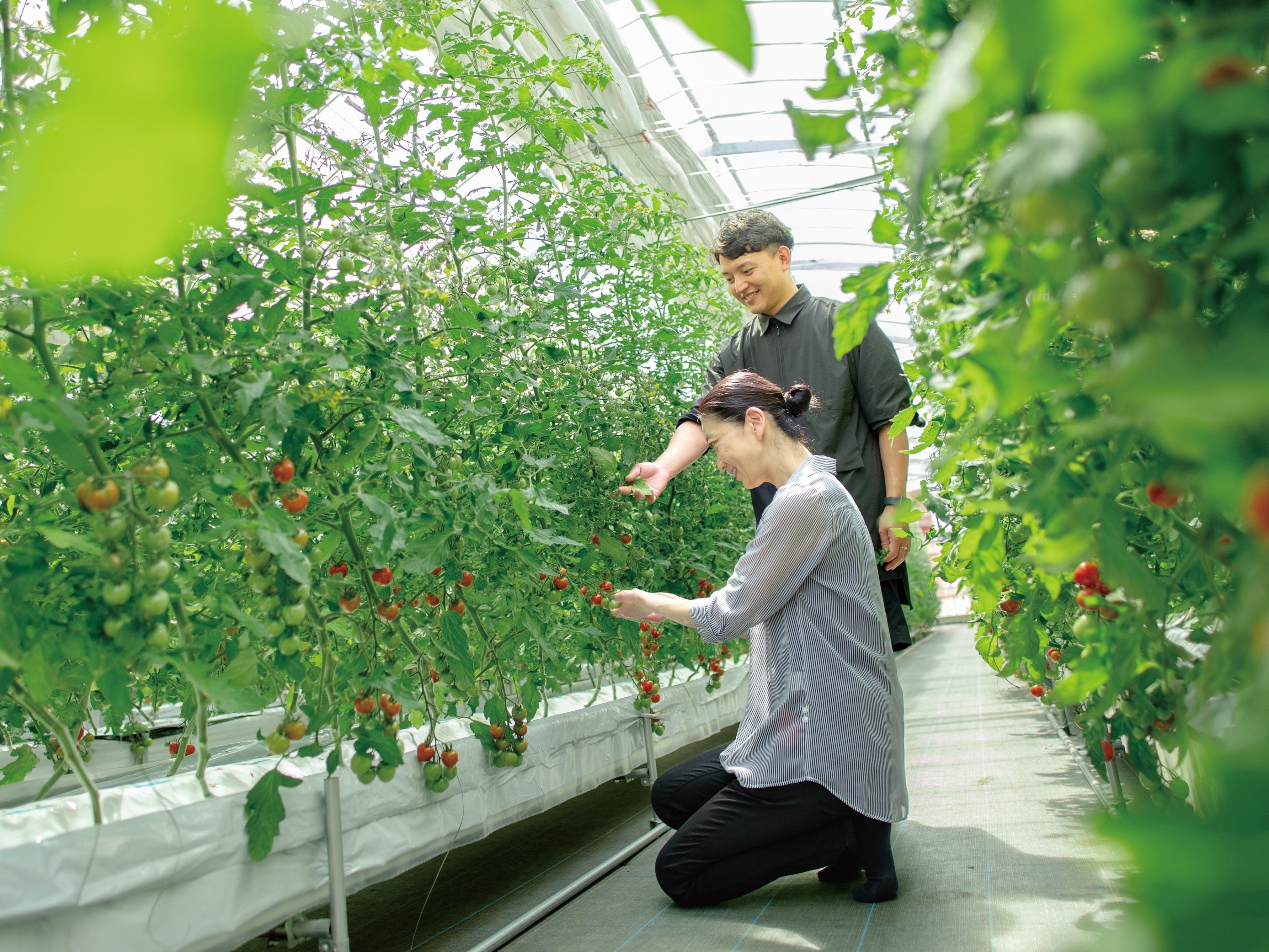 地域の特色や生産者ならではの食し方、流通数が少ない希少な食材の情報など、メニュー作りにおいて生産者との交流は大切な要素です。両料理長が実際に生産現場を見て、話して、感じることで生まれる料理には生産者の想いも込められています。