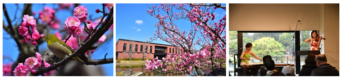せて開催されるイベントです。園内では、久留米市の友好都市・中国の合肥市から贈られた「春梅」など紅白140本の梅の花をご鑑賞いただけるほか、梅並木を背景にした「梅コンサート」をお楽しみいただけます。