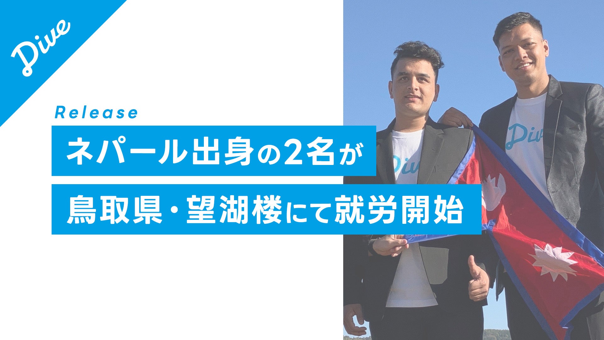 宿泊業界特化の特定技能人材サービス「宿泊業界のための外国人求人ナビfor特定技能」を提供する株式会社ダイブ(東京都新宿区 代表取締役:庄子潔 以下、ダイブ)が登録支援として就労支援をしている、ネパール出身の2名が鳥取県にある望湖楼にて、就労が決定したことをお知らせいたします。