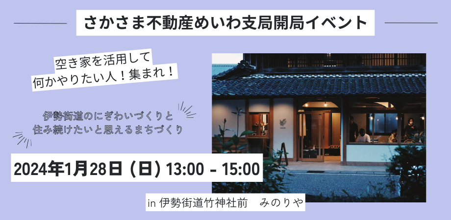 つきましては、1月28日(日)に明和町にて開局イベントを実施いたします。伊勢街道のにぎわいづくりと空き家の利活用の足掛かりとなることを目指します。
