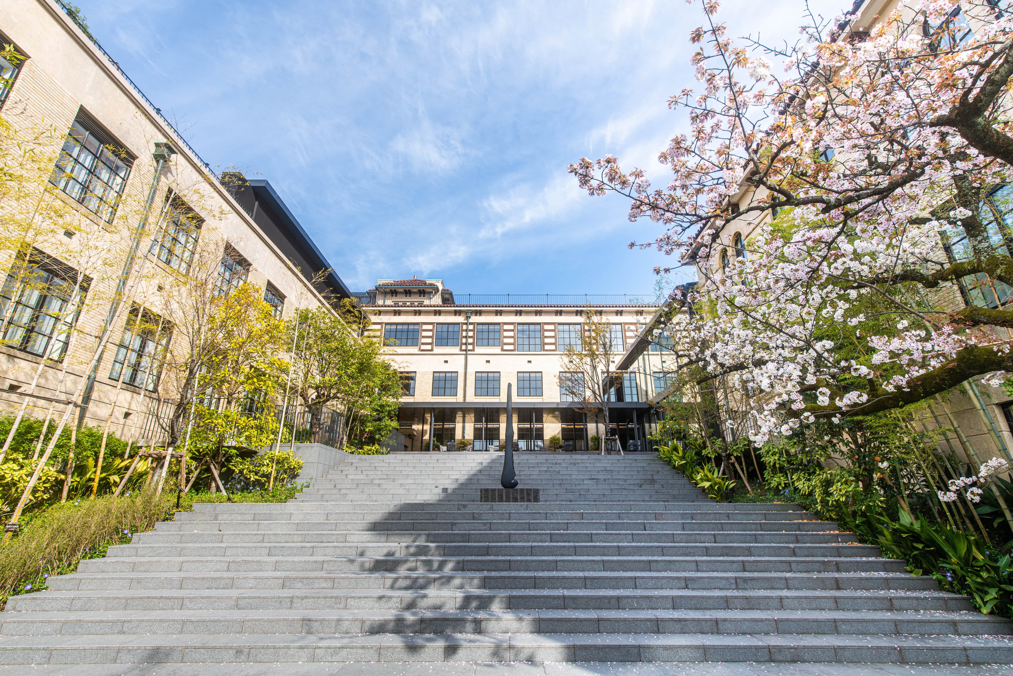小学校時代からの桜が印象的なホテルエントランス
