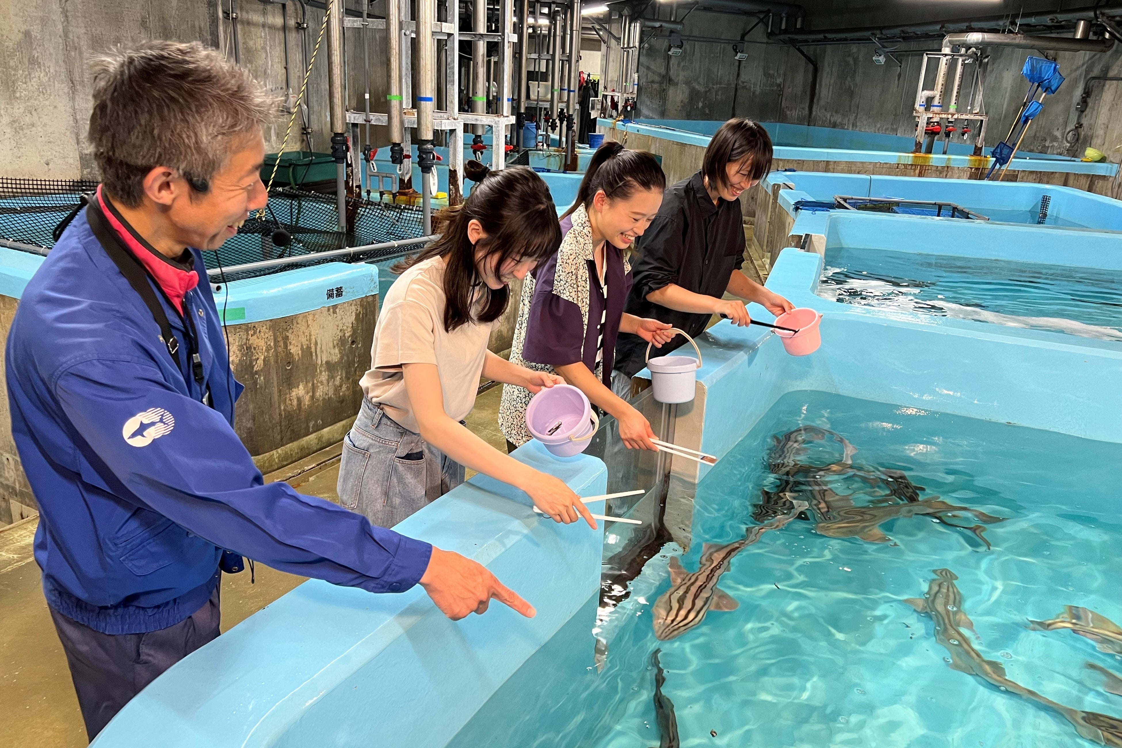 アクアワールド茨城県大洗水族館は、日本一のサメの飼育種類数を誇ります。本イベントでは、飼育員の解説を交えながら、水槽の裏側を歩いて学ぶ「バックヤードツアー」と、普段展示されていない水槽にいるサメに餌をあげる体験をすることができます。体験中には、飼育員に直接質問をしたり、水槽を通さず近い距離でサメをはじめとする海の生き物を観察したりすることで、水族館や海の生き物への知識を深めることができます。