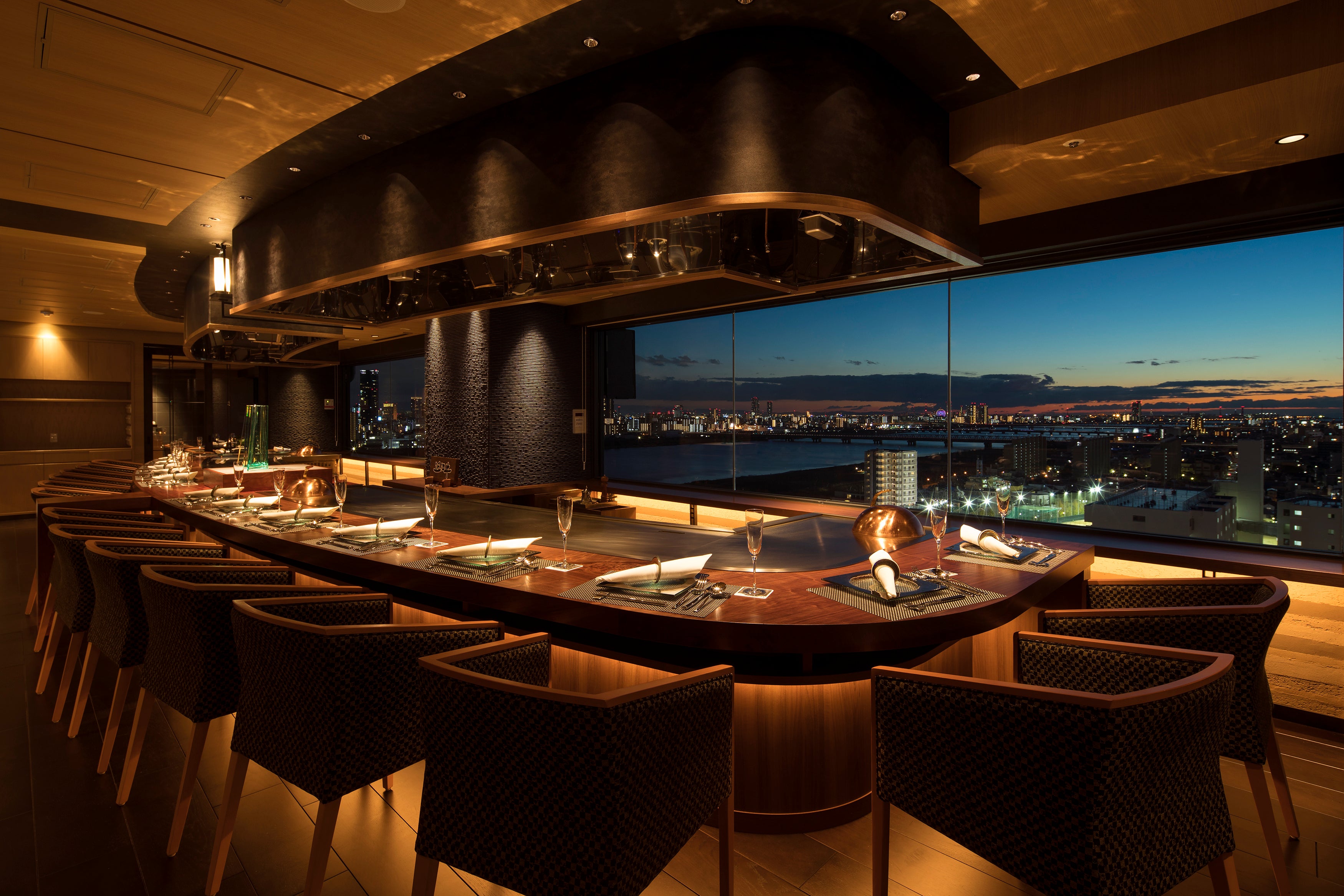 プロジェクトに先駆けて、ホテル外観とホテル最上階のフラッグシップレストラン(鉄板焼「逢坂」)を再現。
