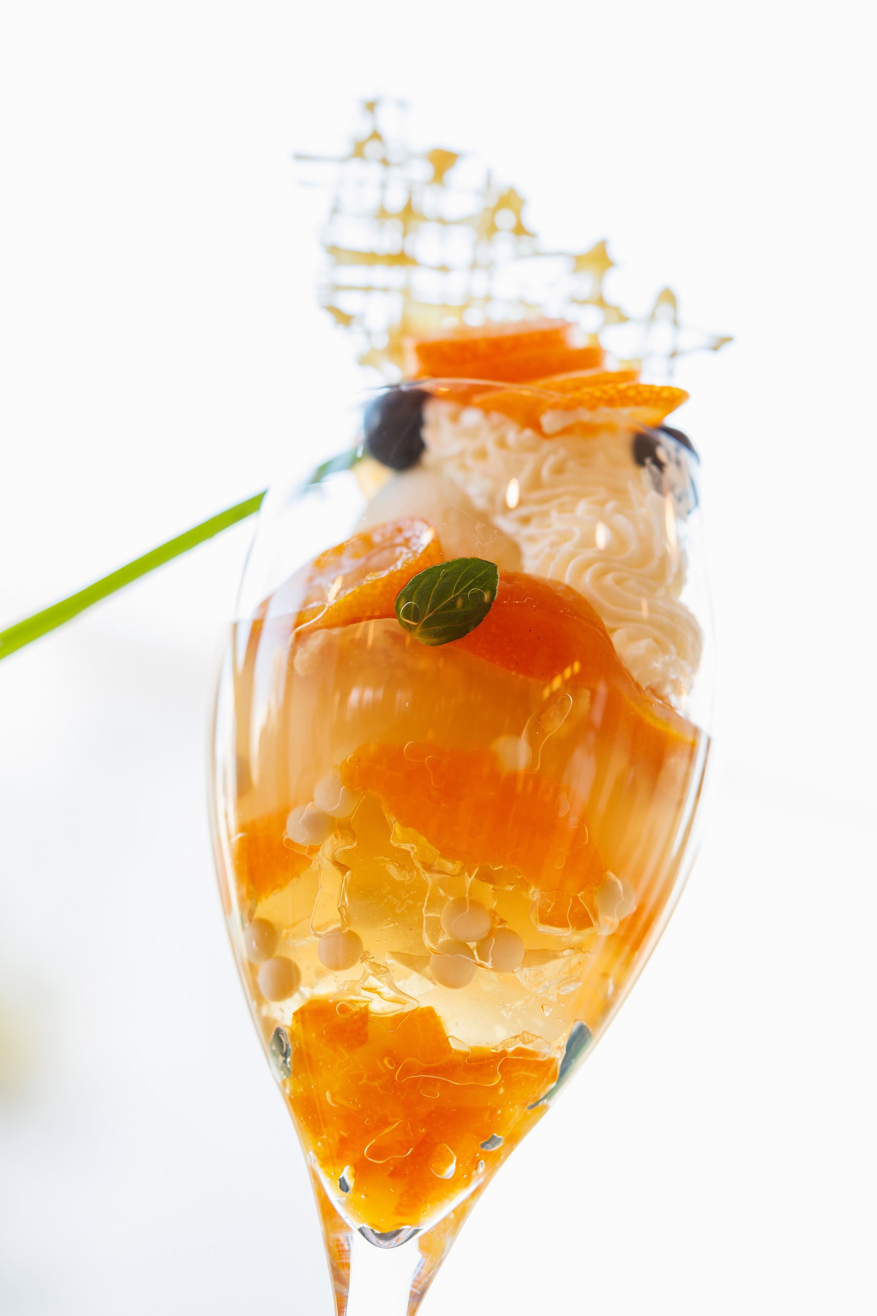 他に、防腐剤・防カビ剤を使用せず持続可能(SDGs)な農業経営を目指す「緑の里りょうくん」(宮崎県日南市)のグレープフルーツ、日南ポンカン(後半は不知火)を使い、フレッシュな甘みたっぷりの柑橘の恵みが楽しめるパフェに仕上げました。