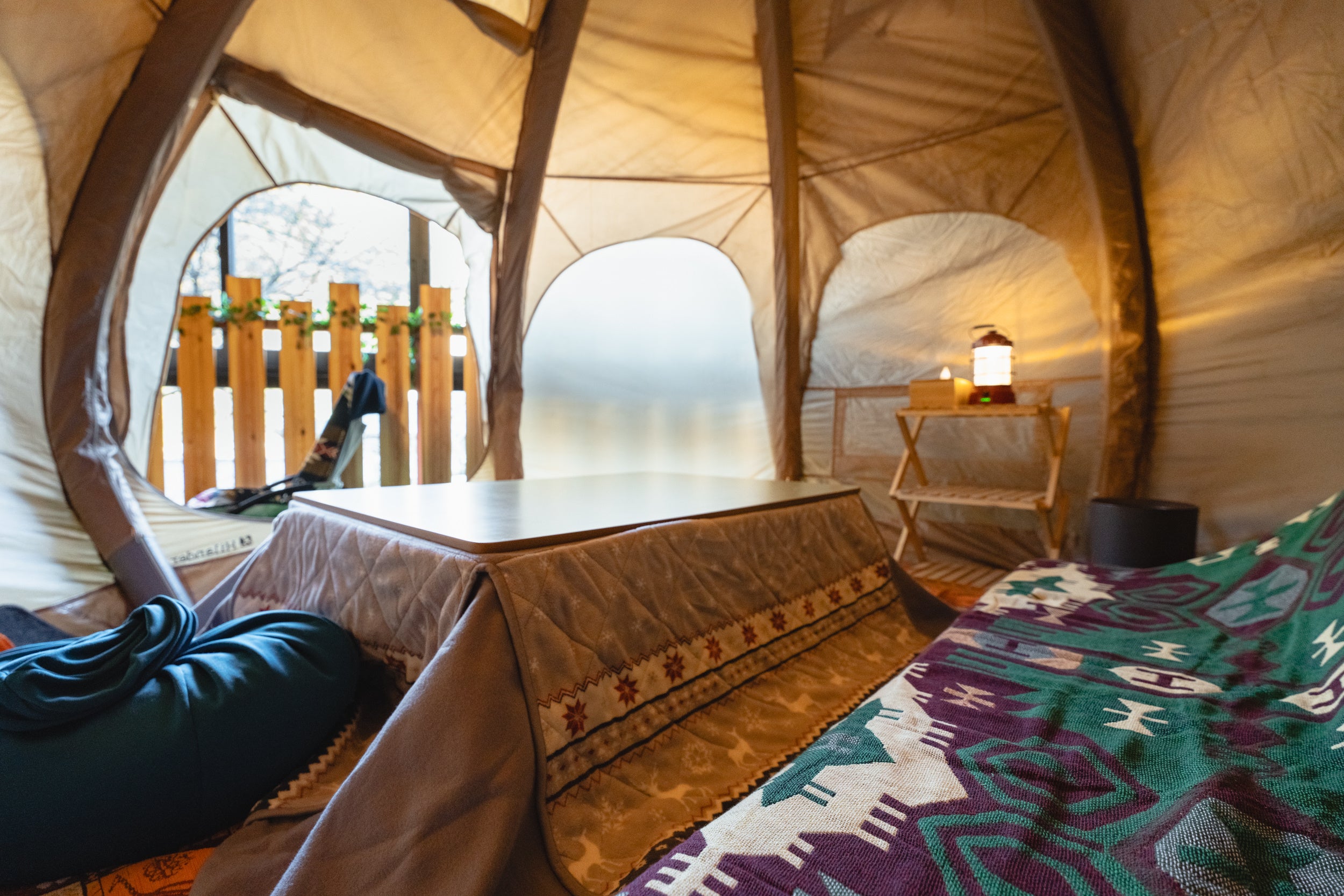 BBQが一息つきましたら、テント内のこたつでお過ごしいただけます。
