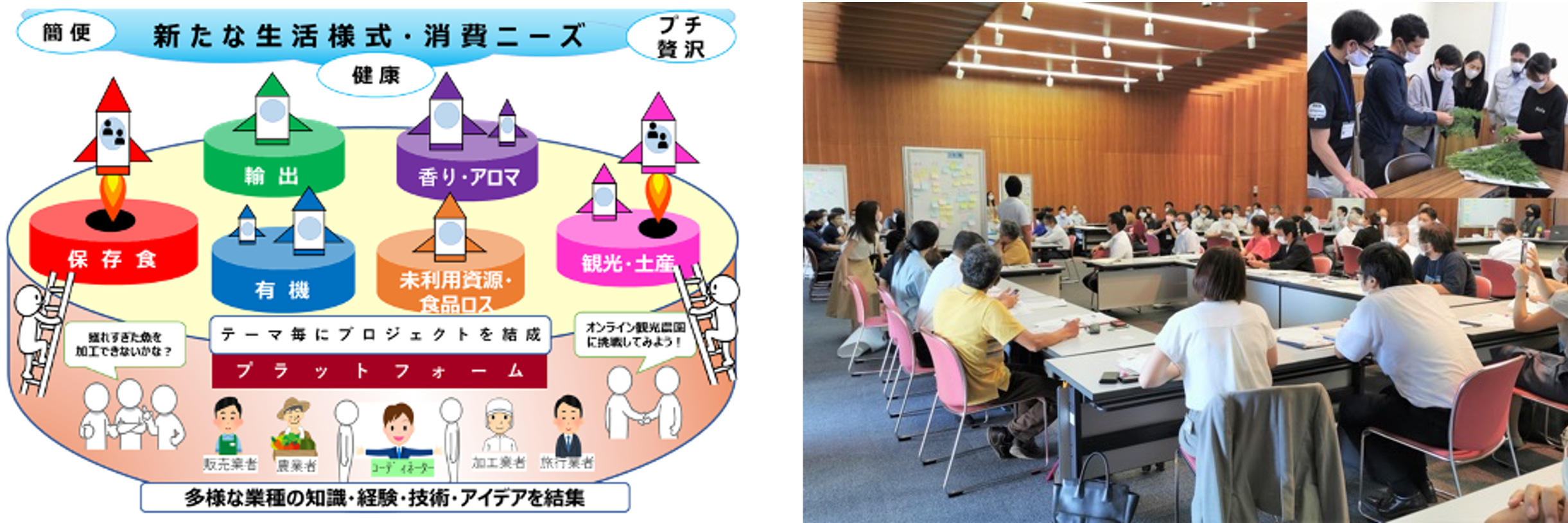 宮崎県の強みである地域食資源の高付加価値化に向けた取組を強化するため、新たな生活様式や消費ニーズに対応した新商品・新サービスの開発を目指し、食と農に関する多様な関係者が参画して、各々の知識・技術・経験等を結集する“みやざきLFPプラットフォーム”を設置しました。