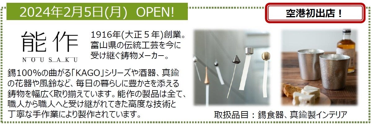 「金子眼鏡店」・「能作」 ・「マザーハウス」の3店舗がオープンいたします。