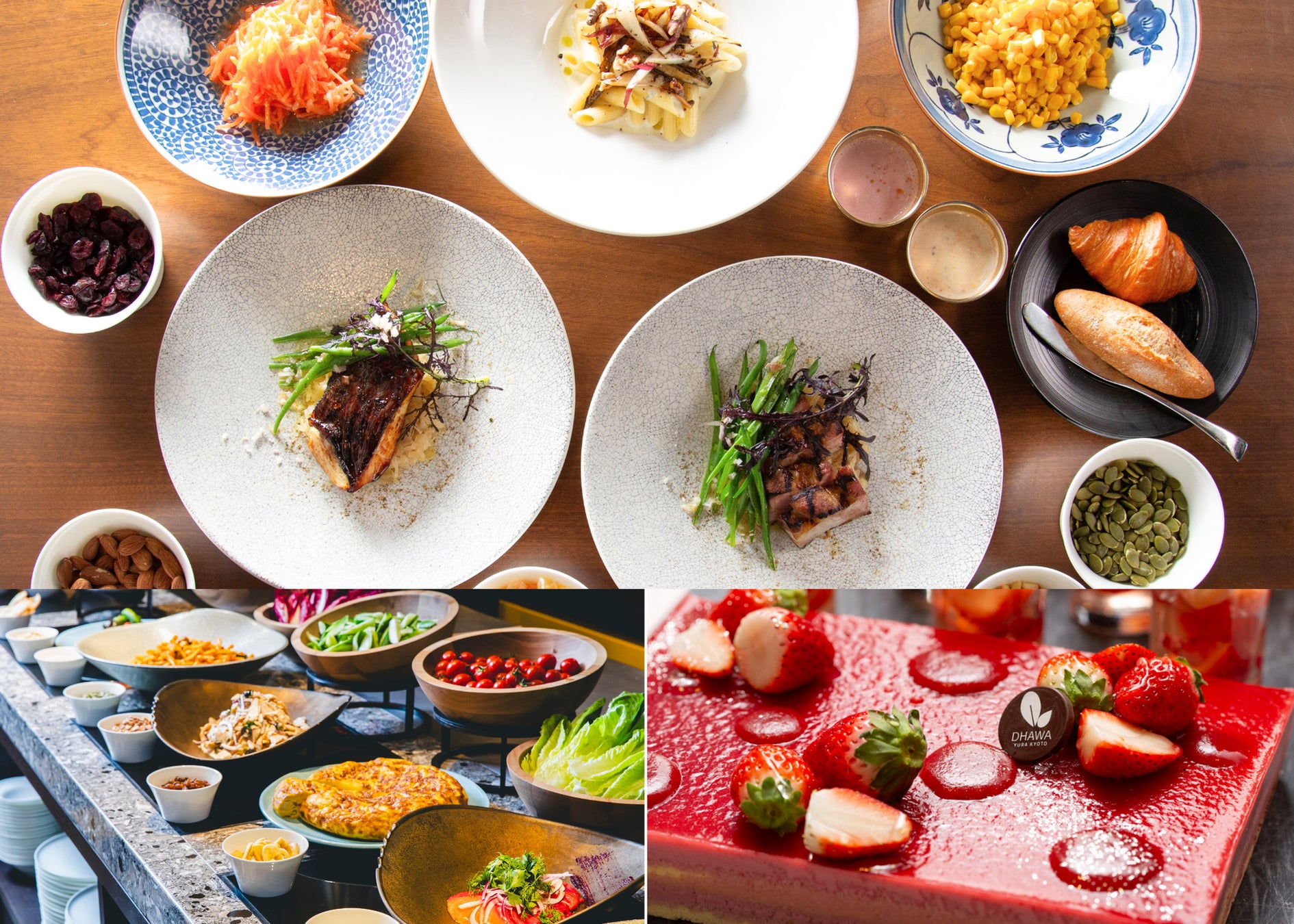 ウェルビーイングビュッフェの8種類から選べるメイン料理、スイーツなどで発酵食品である味噌、麹、酒粕やチーズなどを取り入れたメニューが登場。カラフルで気分が軽やかになるいちごスイーツも1月に引き続きご用意いたします。