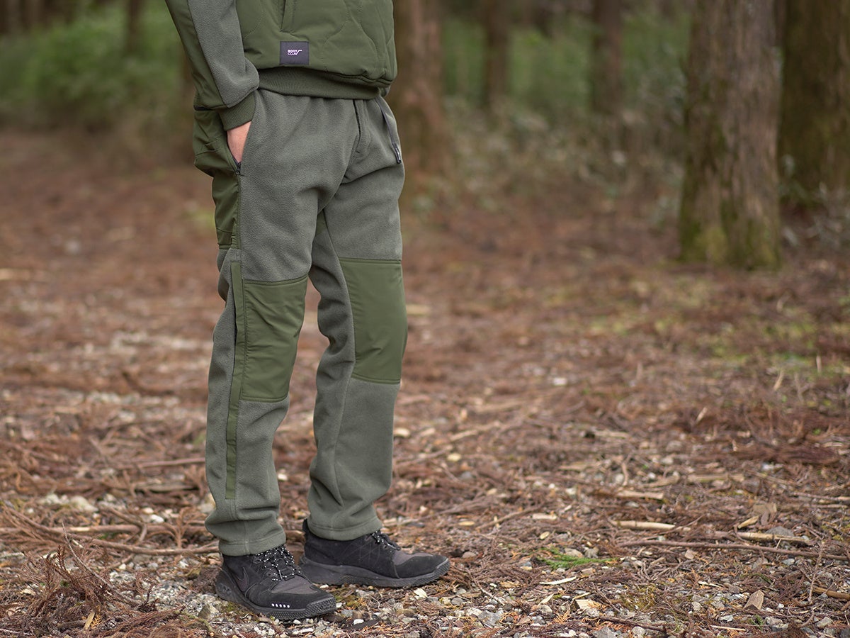 軽量・保温・通気・耐水性に優れた高機能繊維「サーモライト」を使用しキルティング生地とフリース生地を組み合わせた秋冬用ジャケットと、フリースパンツにストレッチ性ポリエステル生地を組み合わせた秋冬用パンツ。