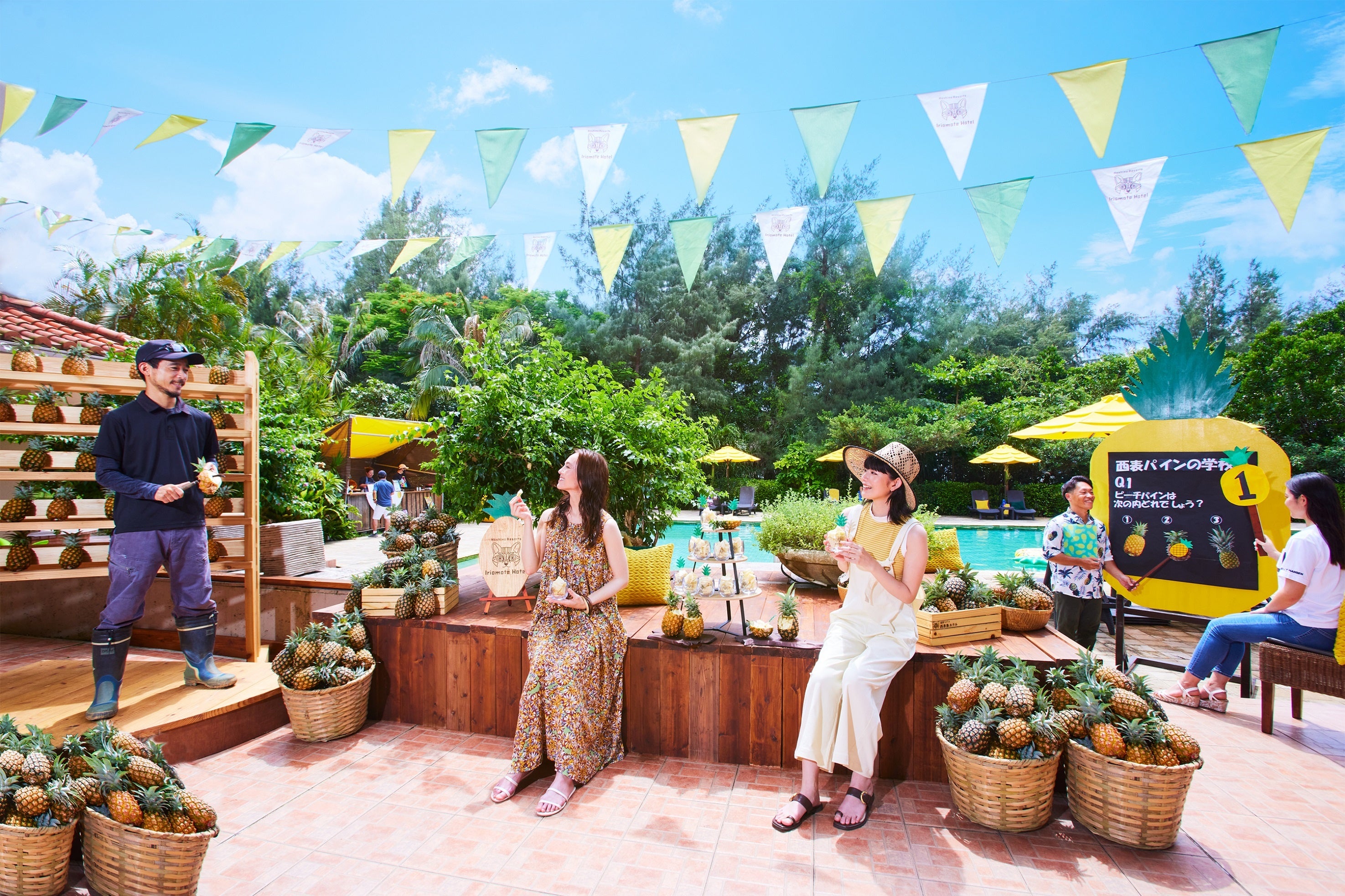 ホテルスタッフの案内で、西表島のピーチパイン畑を実際に訪れる「ピーチパインガイドツアー」を新たに開催します。このツアーでは、実際にピーチパイン畑に行き、ピーチパインの生え方や畑での様子を見ることができます。その他にも、パイン畑の絶景ポイントや農家直営のカフェなどのおすすめスポットを、ホテルスタッフが案内。普段から西表島で生活をして農家さんと交流しているからこそ知っている、ピーチパインの魅力やカフェのおすすめメニューなどを特別に伝えます。ホテルから一歩飛び出して、西表島だからこそのピーチパインの楽しみ方を知れる体験です。