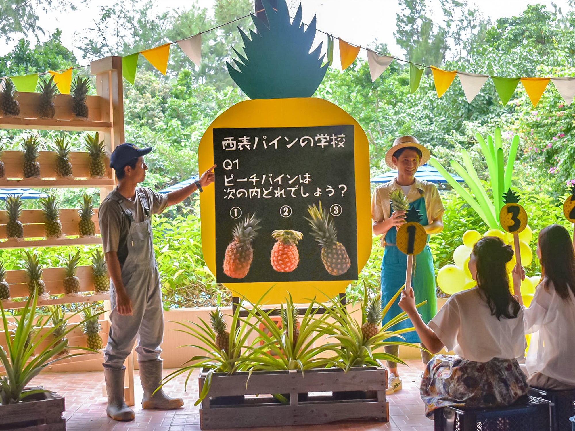 ピーチパインをより一層楽しんでいただくために、期間中、毎日「西表島パインの学校」を開講します。西表島のピーチパインがなぜ美味しいのか、どんな歴史があるのか、実際にパイン農家に行きレクチャーを受けたスタッフが話します。産地農家だからこそ知るピーチパインの秘密を知ることができる学校です。