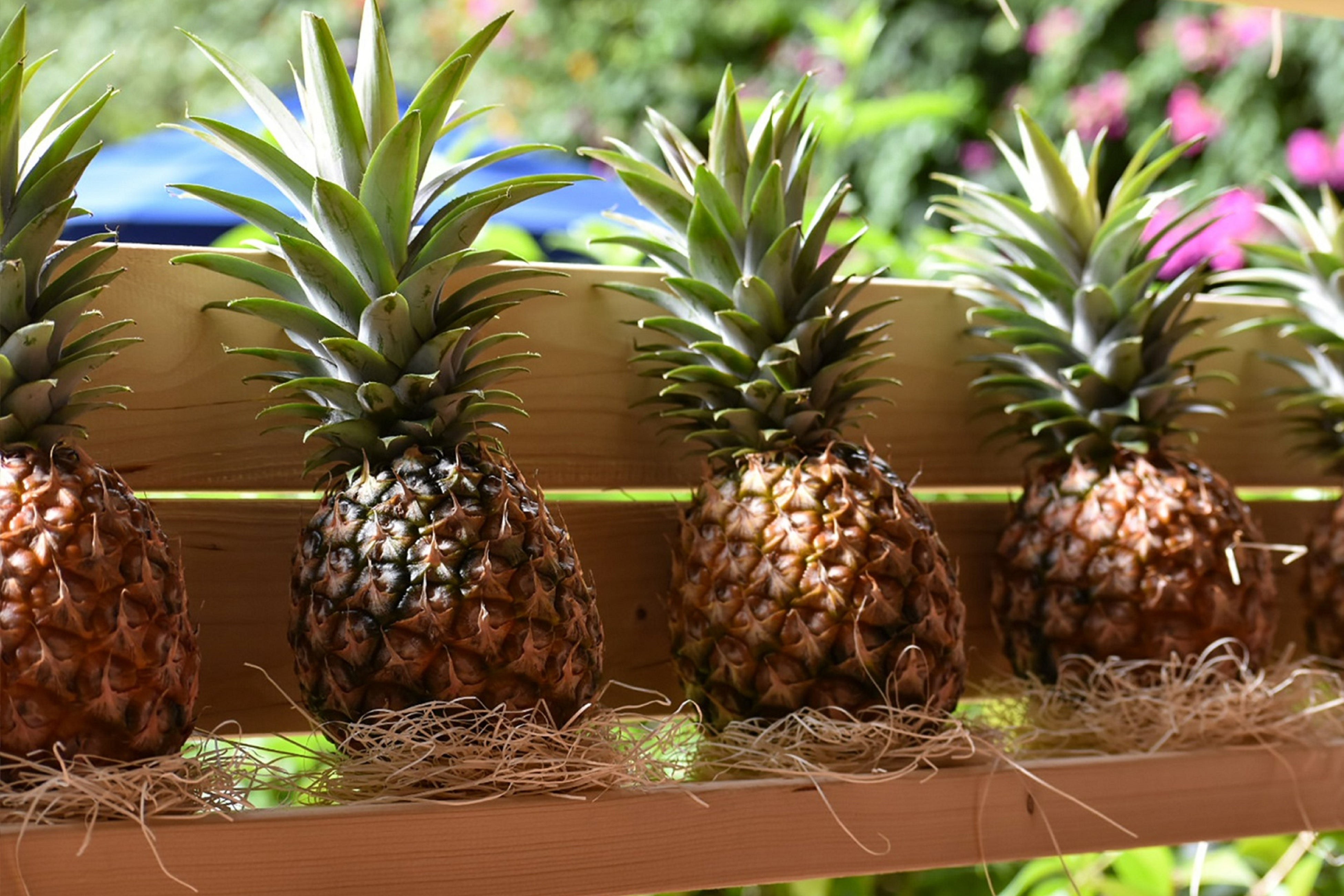 ピーチパインは小ぶりな果実に果汁がたっぷりで、果肉は白っぽく、香りは桃のようなさわやかさが特徴です。また、果肉はパイン特有の繊維感もなく、芯の部分まで食べられます。さらに、収穫シーズンが非常に短いため、生産量が少なく、市場に出回ることも珍しいパインです。そんなピーチパインを祭り期間中は毎日振る舞うため、ピーチパインを味わい尽くすことができます。