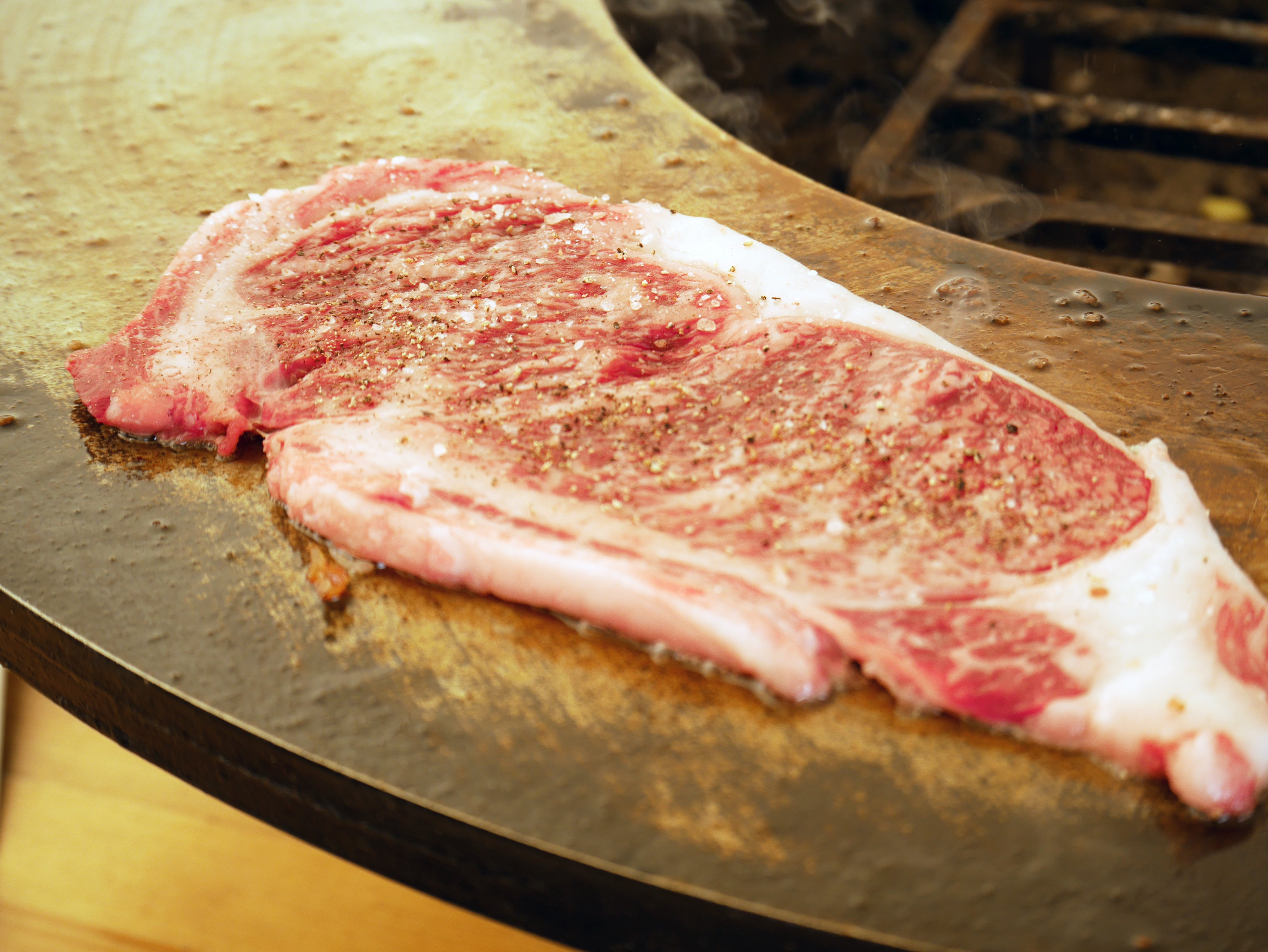 備長炭を使用した円形大型鉄板で焼き上げるグリルディナー