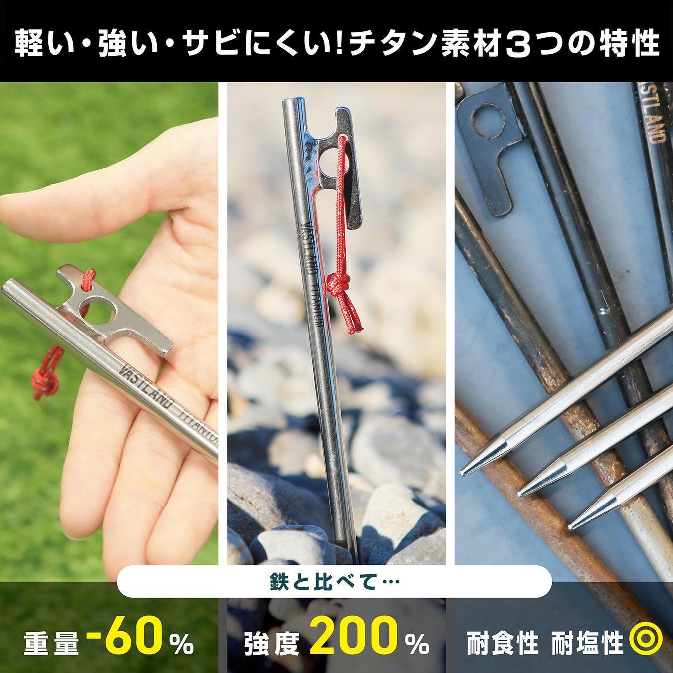 キャンプギアブランド「VASTLAND」、軽量でサビにくく、強度も高い「チタンペグ」を2024/1/20(土)に発売