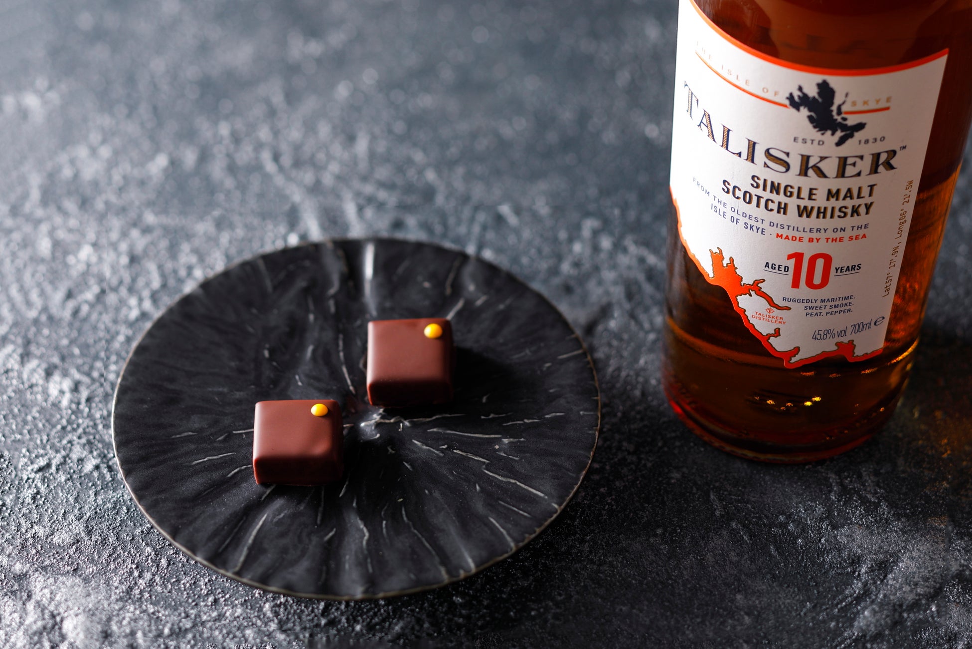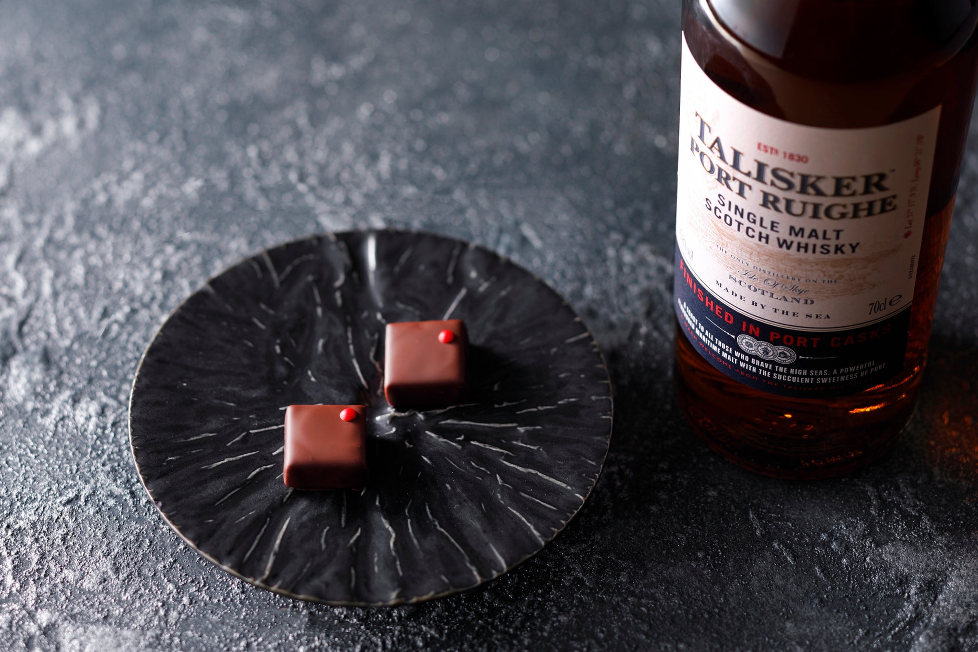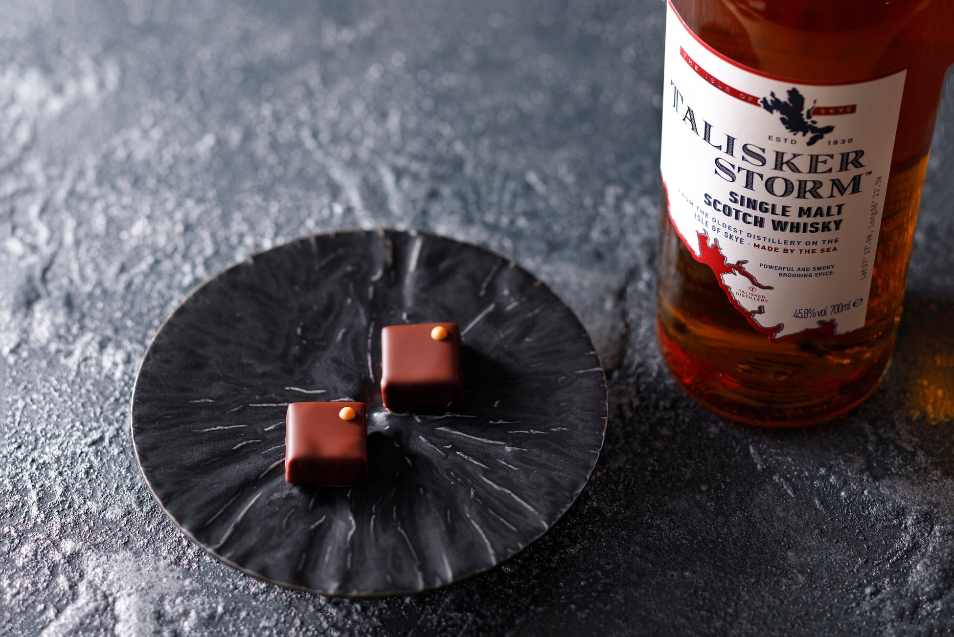 今年は、ブランドのフラッグシップでもあるタリスカー10年・タリスカーストームに加え、ポートワイン樽で追加熟成した特別なシングルモルト・タリスカーポートリーを含めた、3種のタリスカーを使用した新作ショコラをご用意しました。