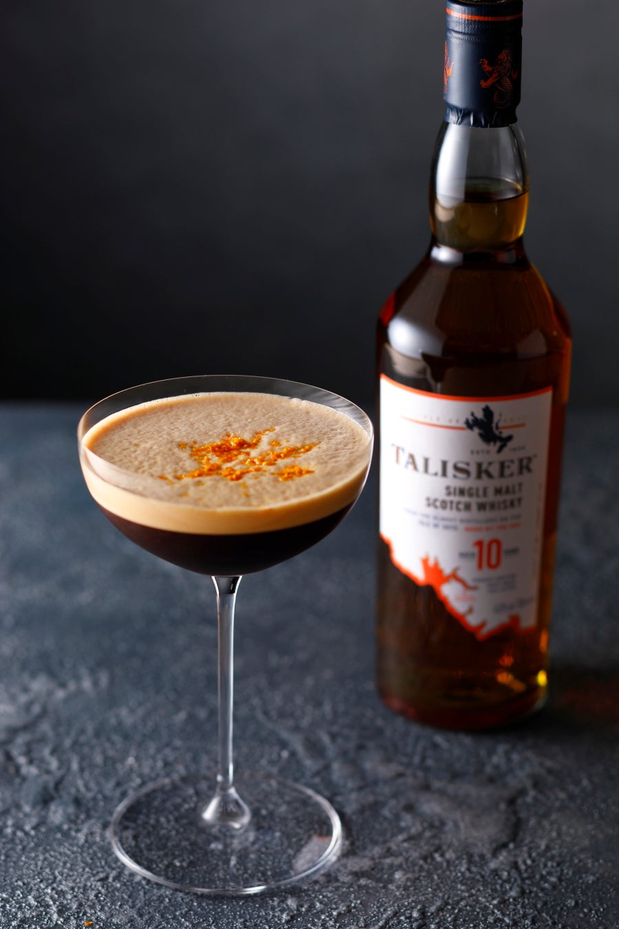 煙るようなスモーキーな味わいのタリスカー10年に、ビターなエスプレッソを合わせたエスプレッソマティーニのツイストカクテル。隠し味にマンゴーを使用し、ほのかにフルーティーな味わいも感じられます。コーヒー好きにおすすめの一杯です。