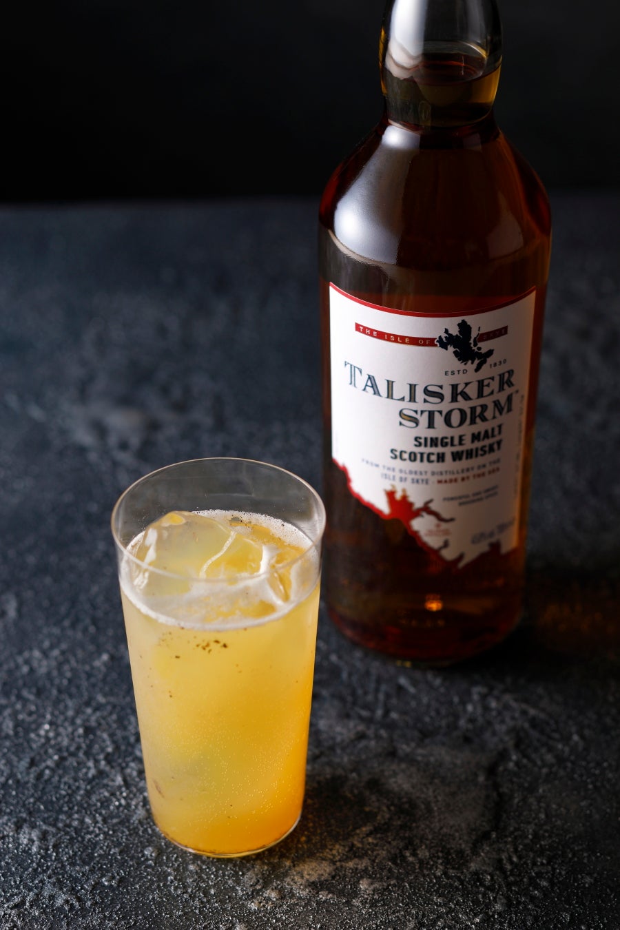 ストーム特有の潮の香りやブラックペッパーの風味と相性の良いパイナップルを組み合わせたカクテルは、突き抜ける爽快感を味わえます。輝くようなゴールドの一杯は、タリスカーの黄金の蒸留酒を表現しています。