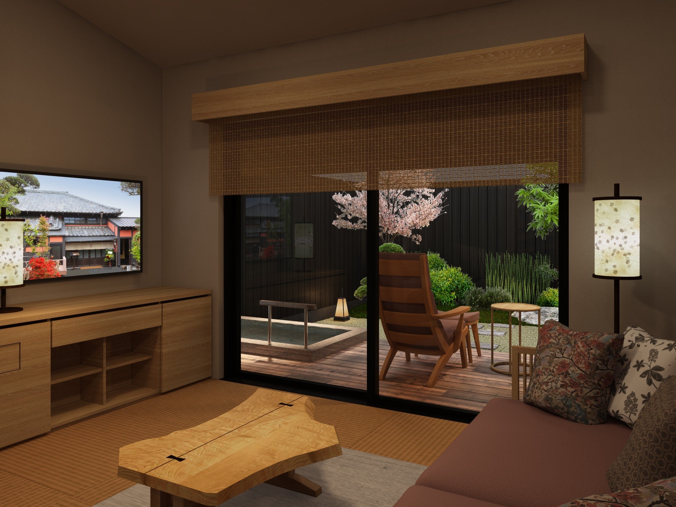 優雅な庭園を配した、温泉露天風呂・サウナ・水風呂を完備したラグジュアリーなお部屋です。
